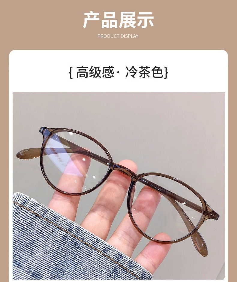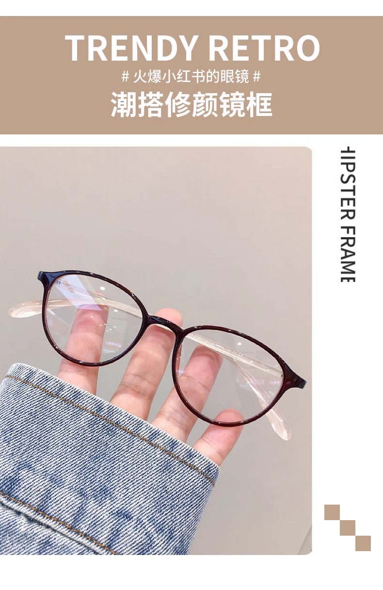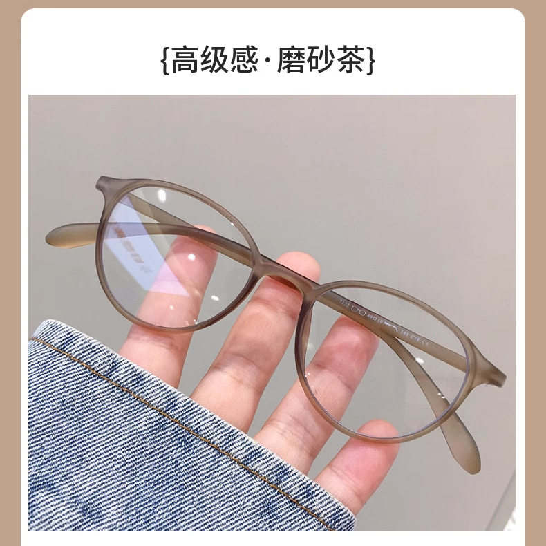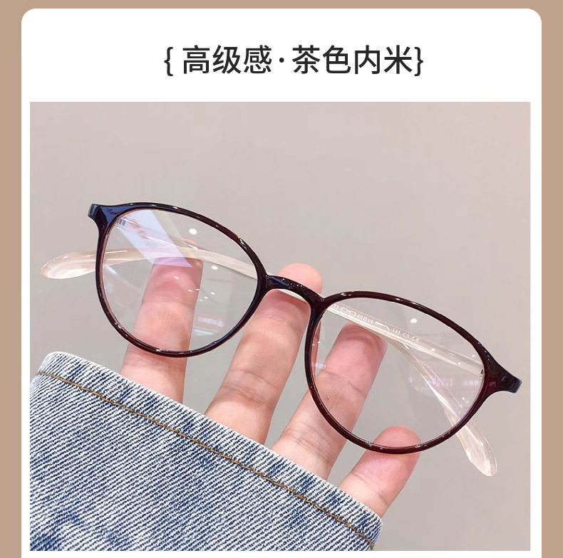 New Korean style high-end feeling retro small round frame brown glasses women's myopia eye frame oval anti-blue light flat mirror