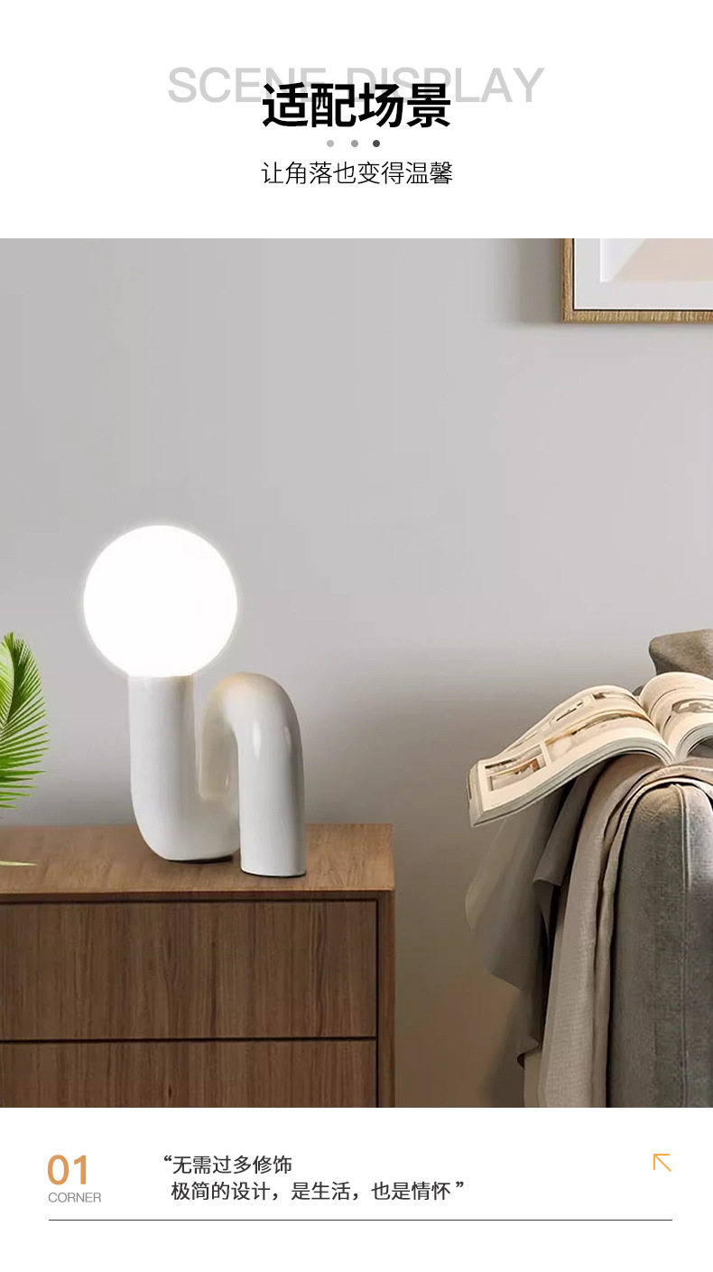 Table Lamp Bedroom Bedside Lamp High-End Nordic Post-Modern Designer Resin Creative Ball Glass Desktop Table Lamp