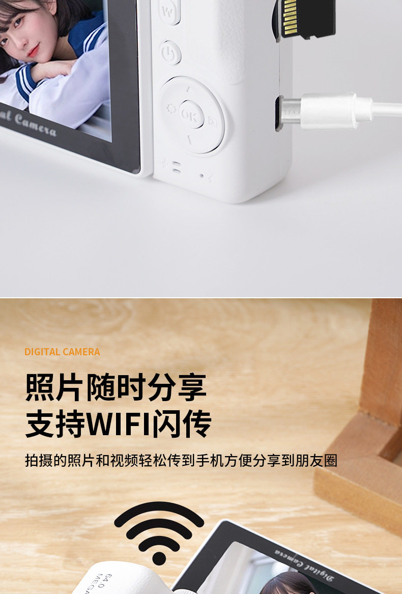 2025 New Wifi Flip-Screen High-Definition Digital Camera Retro Ccd Compact Camera Campus Student Photography Camera