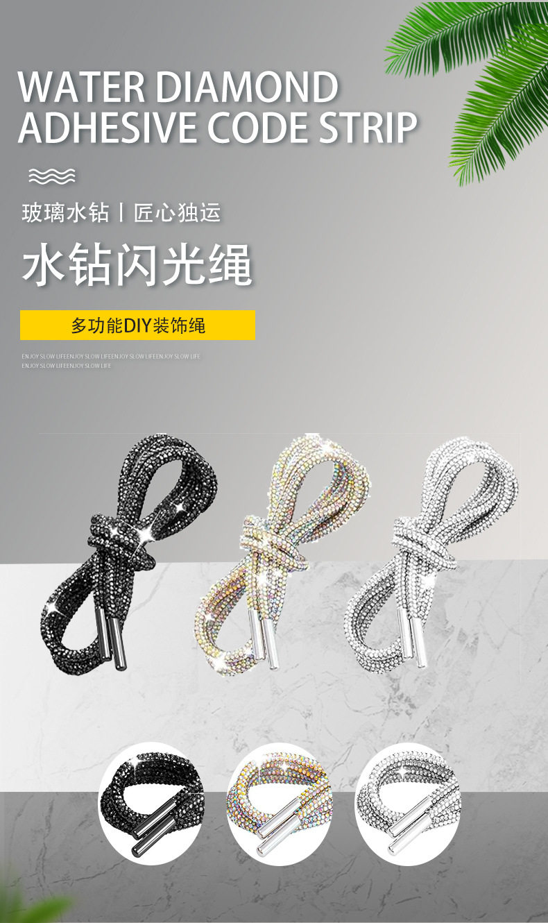 Factory rhinestone round tube shoelace back glue drill tube diy cap rope belt accessories full drill colorful rhinestone strip decorative accessories
