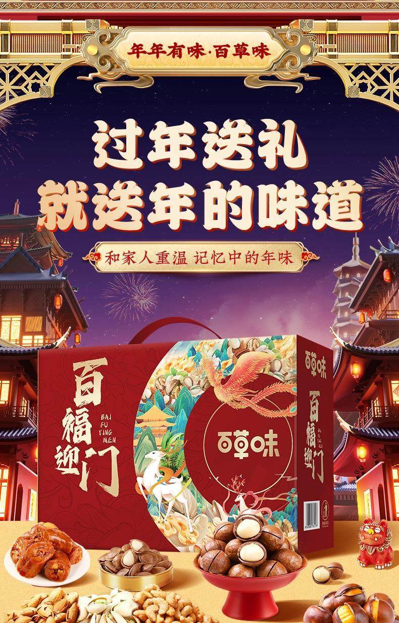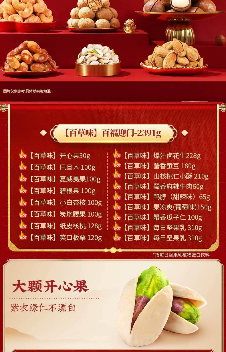 Baicaowei Nut Gift Box Baifuyingmen 2391g Charcoal Roasted Cashews Pecans Dried Fruits New Year's Festival Group Purchase Wholesale