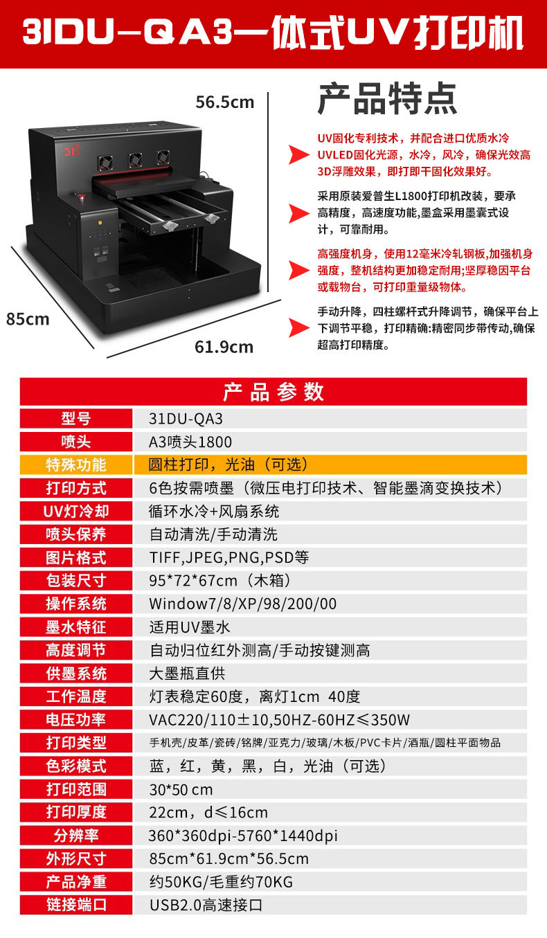 Specification 31du-qa3 integrated uv printer (nozzle 1800) customer intention deposit/sample test (the whole machine can be discussed in detail)