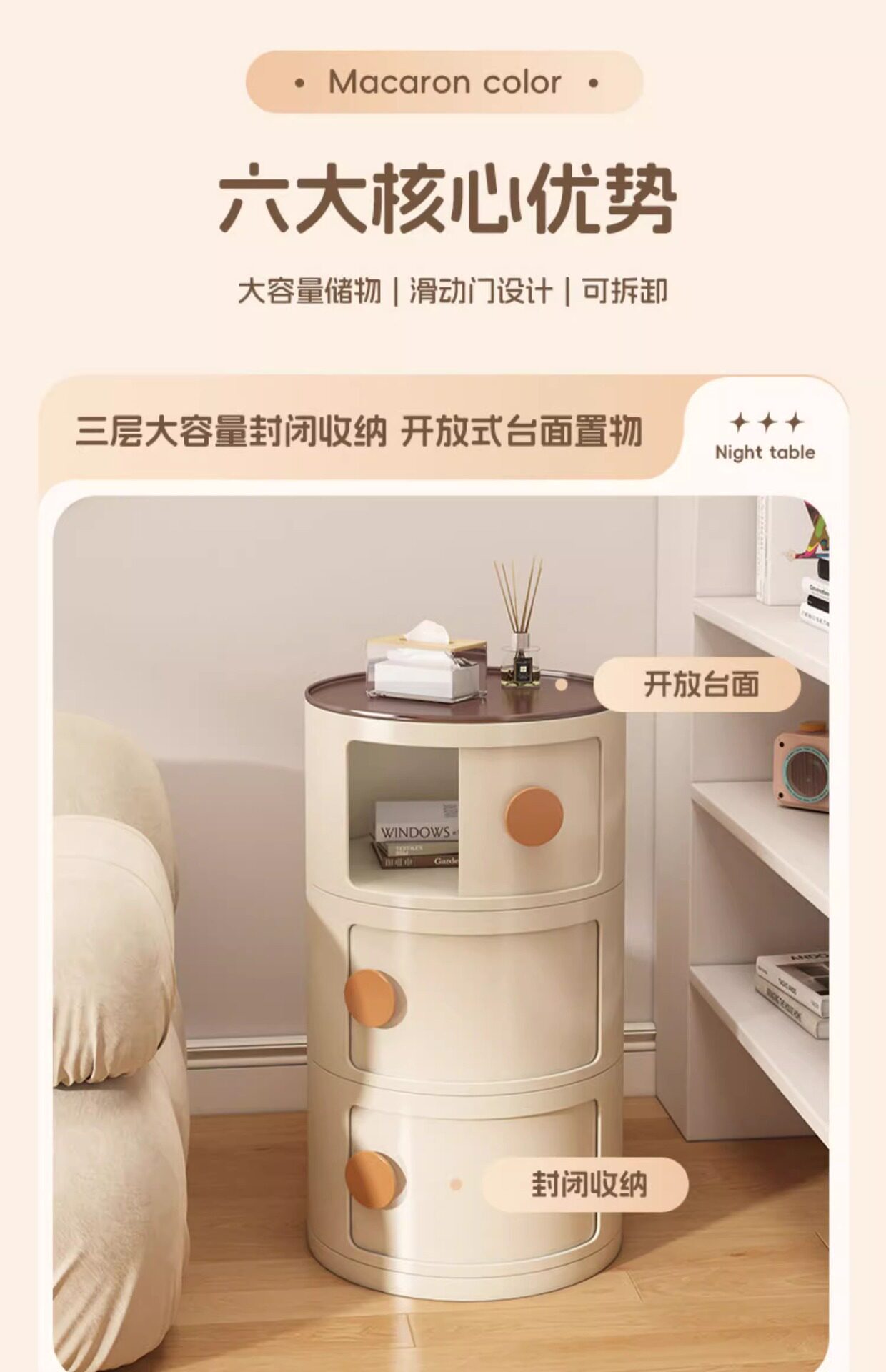 Creative Multi-layer Cylindrical Bedside Table Modern Simple Small Narrow Multi-layer Bedroom Storage Cabinet Ornaments Storage Cabinet
