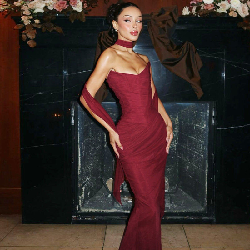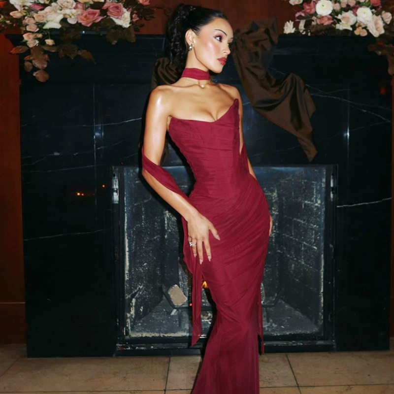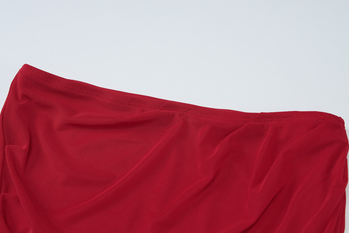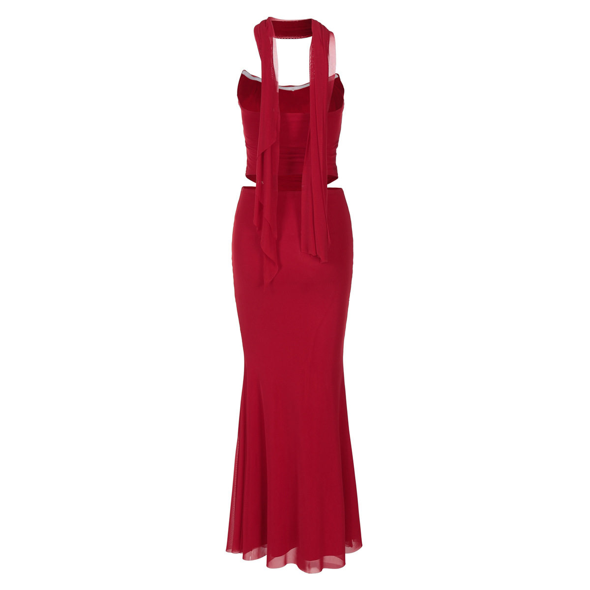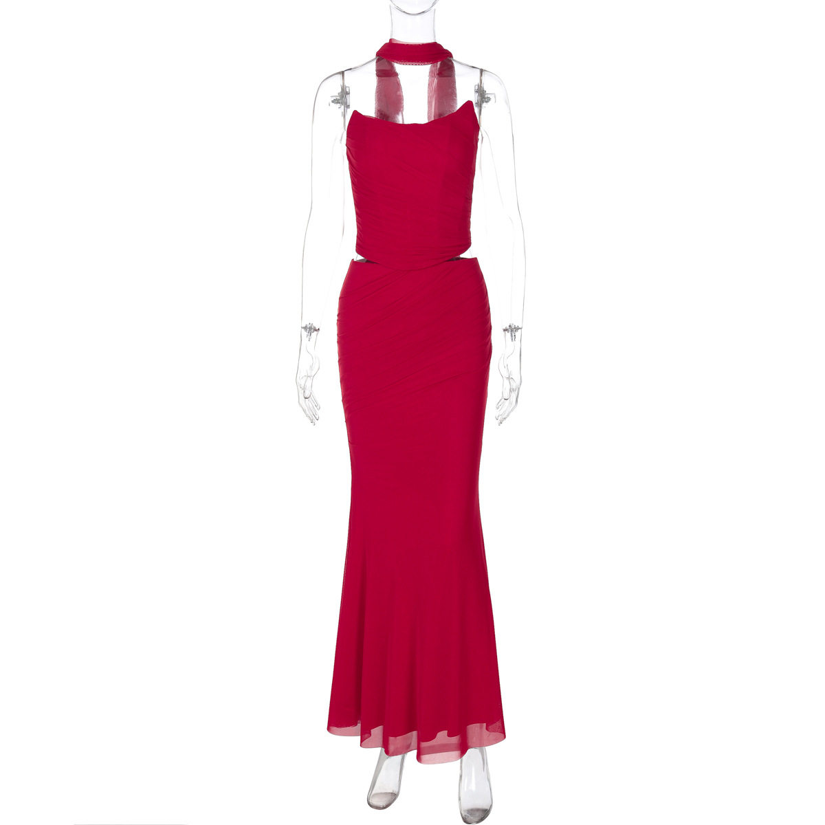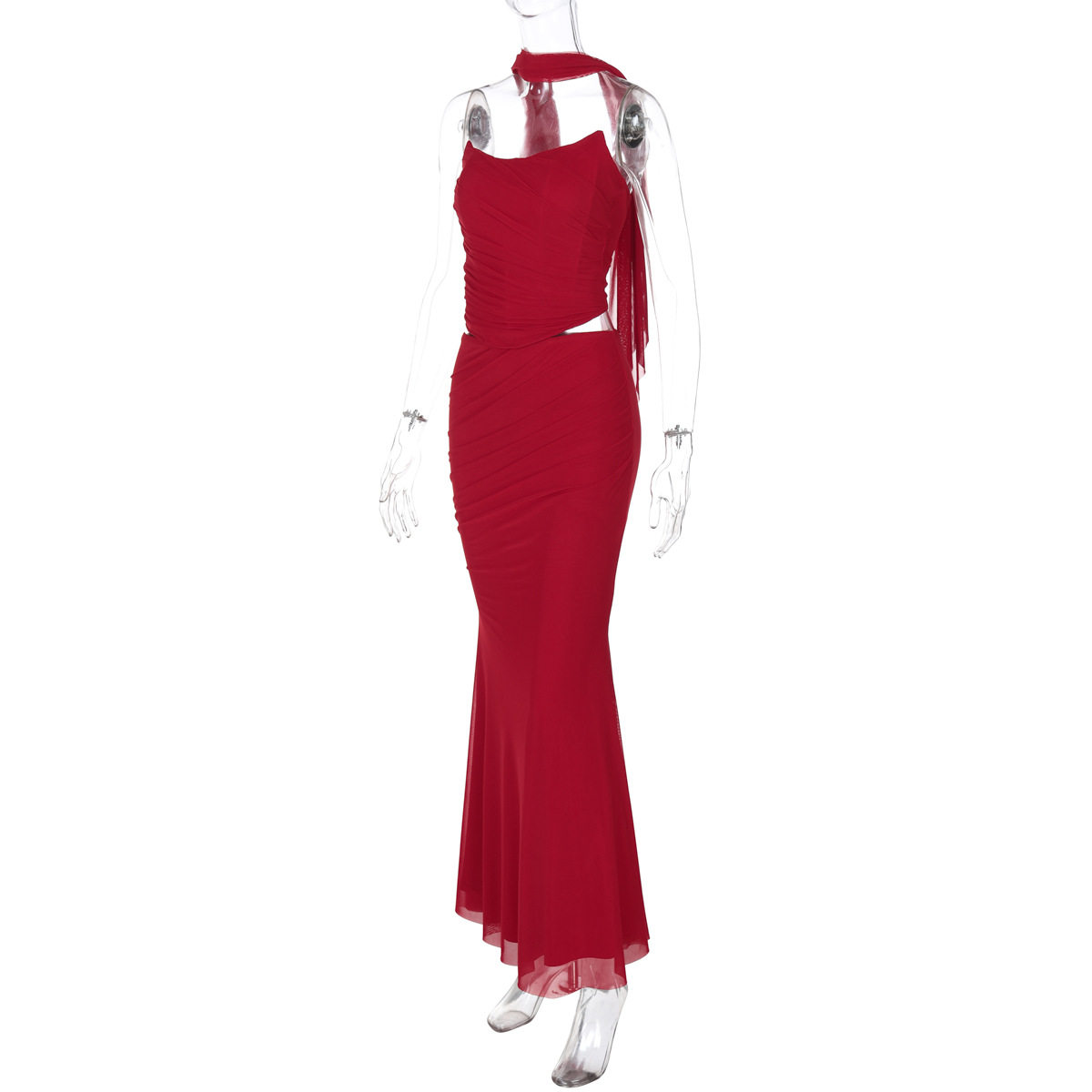 Amazon Cross-border New Sexy Double-layer Mesh Wrap Chest Slim-fit Hip Elegant Long Skirt suit Two-piece Set