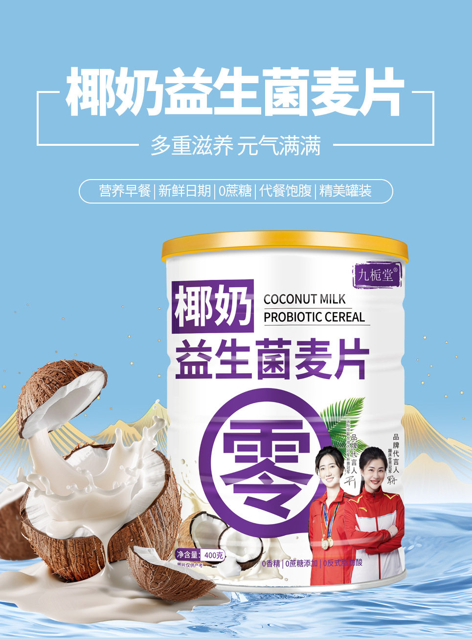 | Packaging specifications | Jiuzhitang 400g coconut milk probiotic cereal |