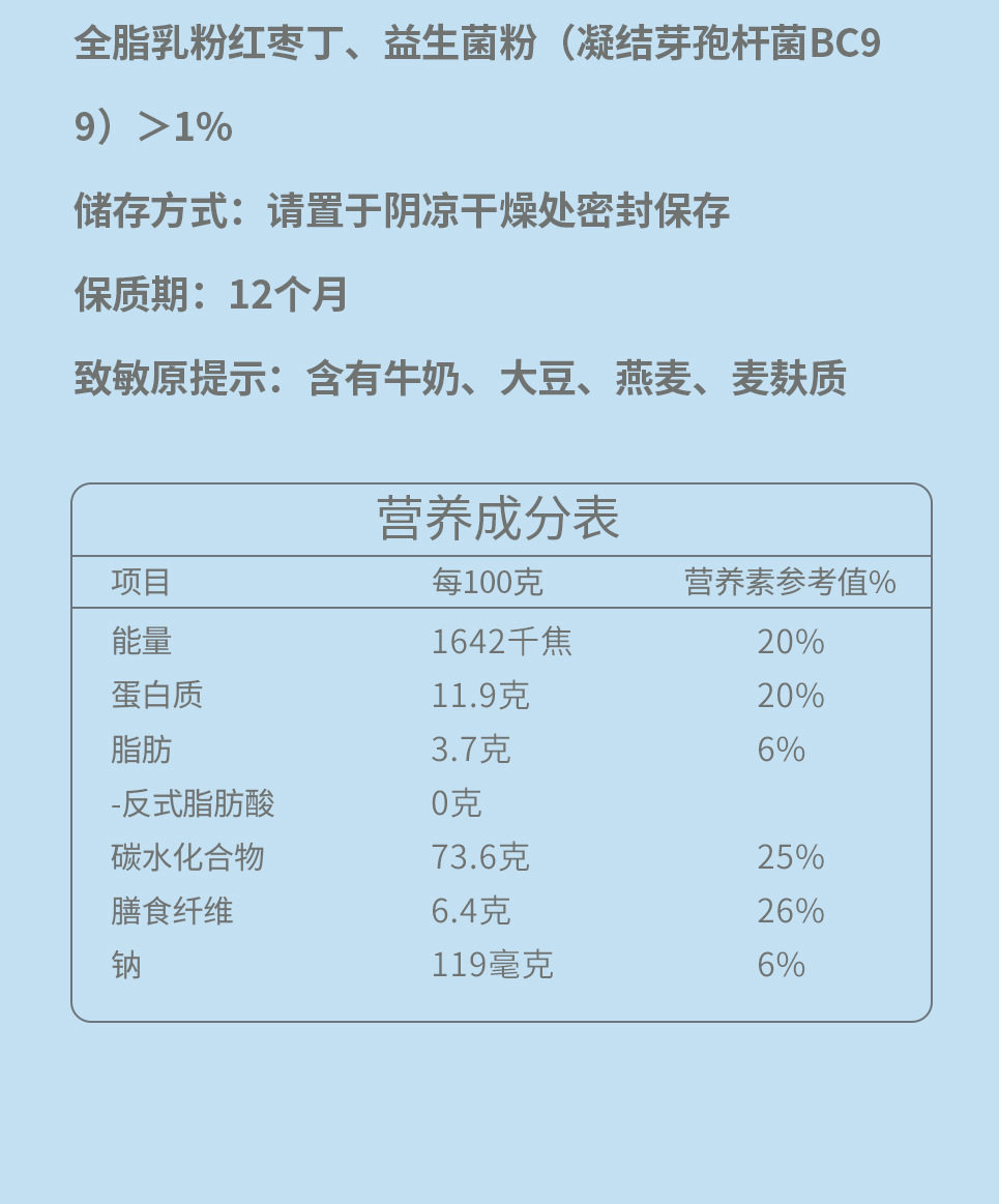 | Raw materials and ingredients | Compound cereal, trehalose, coconut milk powder, whole milk powder, etc. |