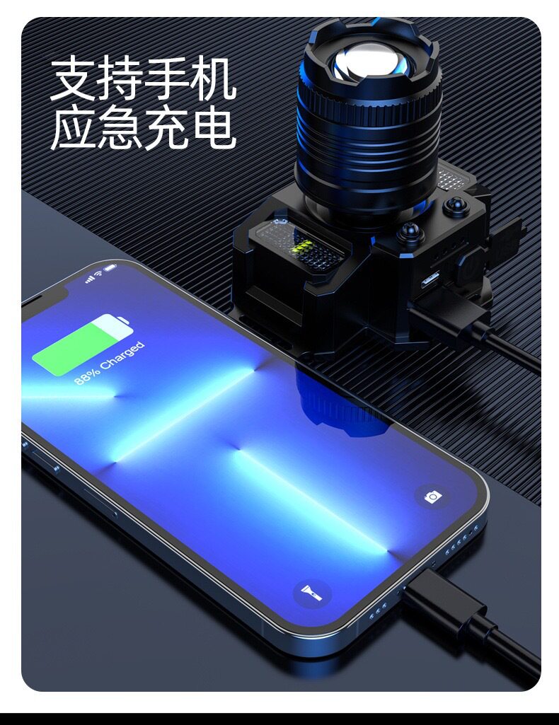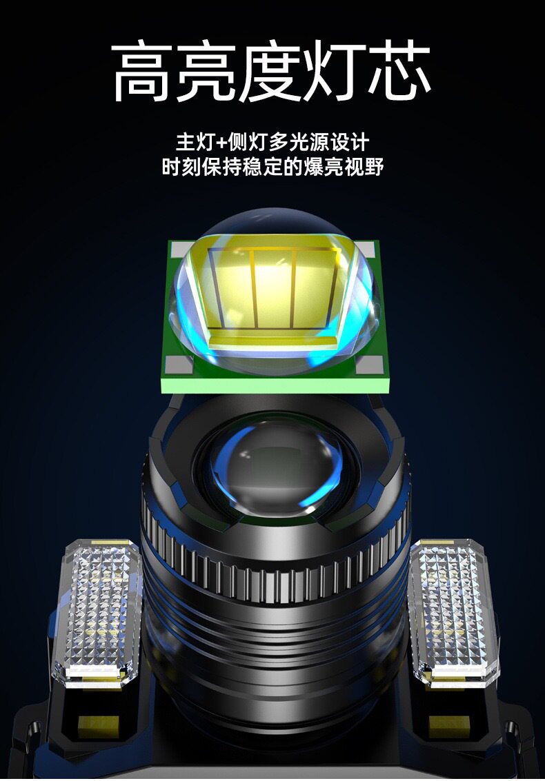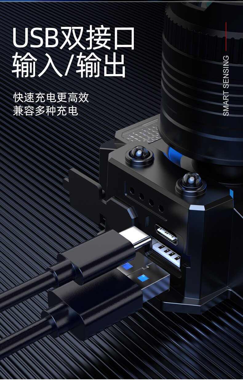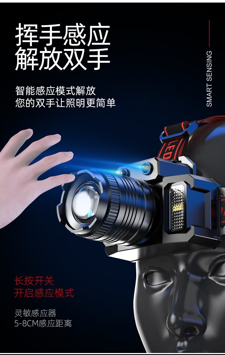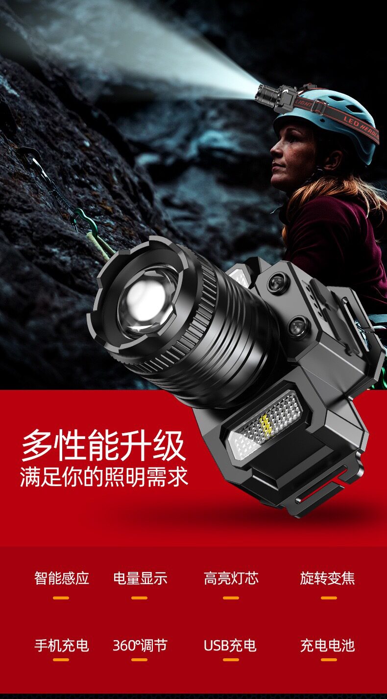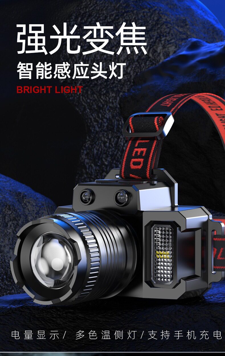 Cross-border induction zoom LED strong head lamp miner's lamp USB charging intelligent electric display head-mounted flashlight fishing lamp