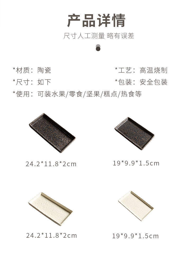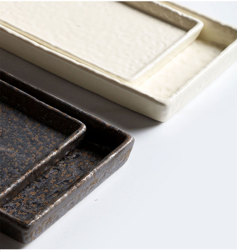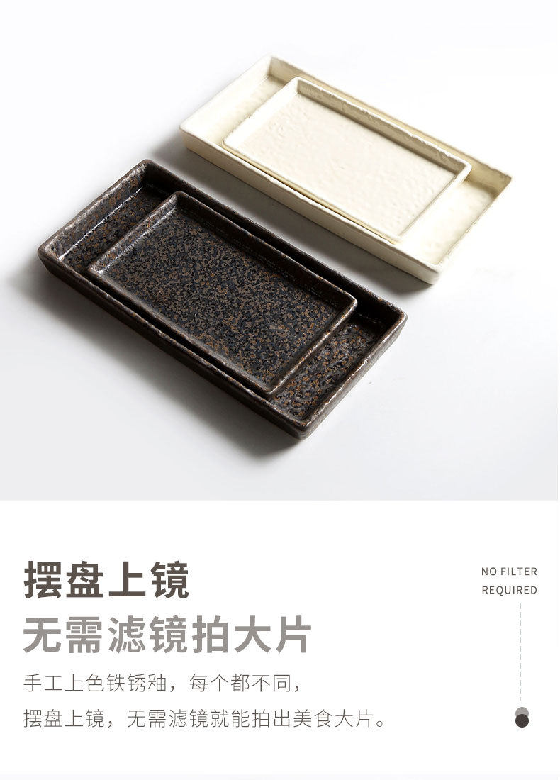| Color | Rust glaze hammered rectangular plate/small size,Rust glaze hammered rectangular plate/medium size,Rust glaze hammered rectangular plate/large size,Cream yellow hammered rectangular plate/small size,Cream yellow hammered rectangular plate/medium size,Cream yellow hammered rectangular plate/large size |