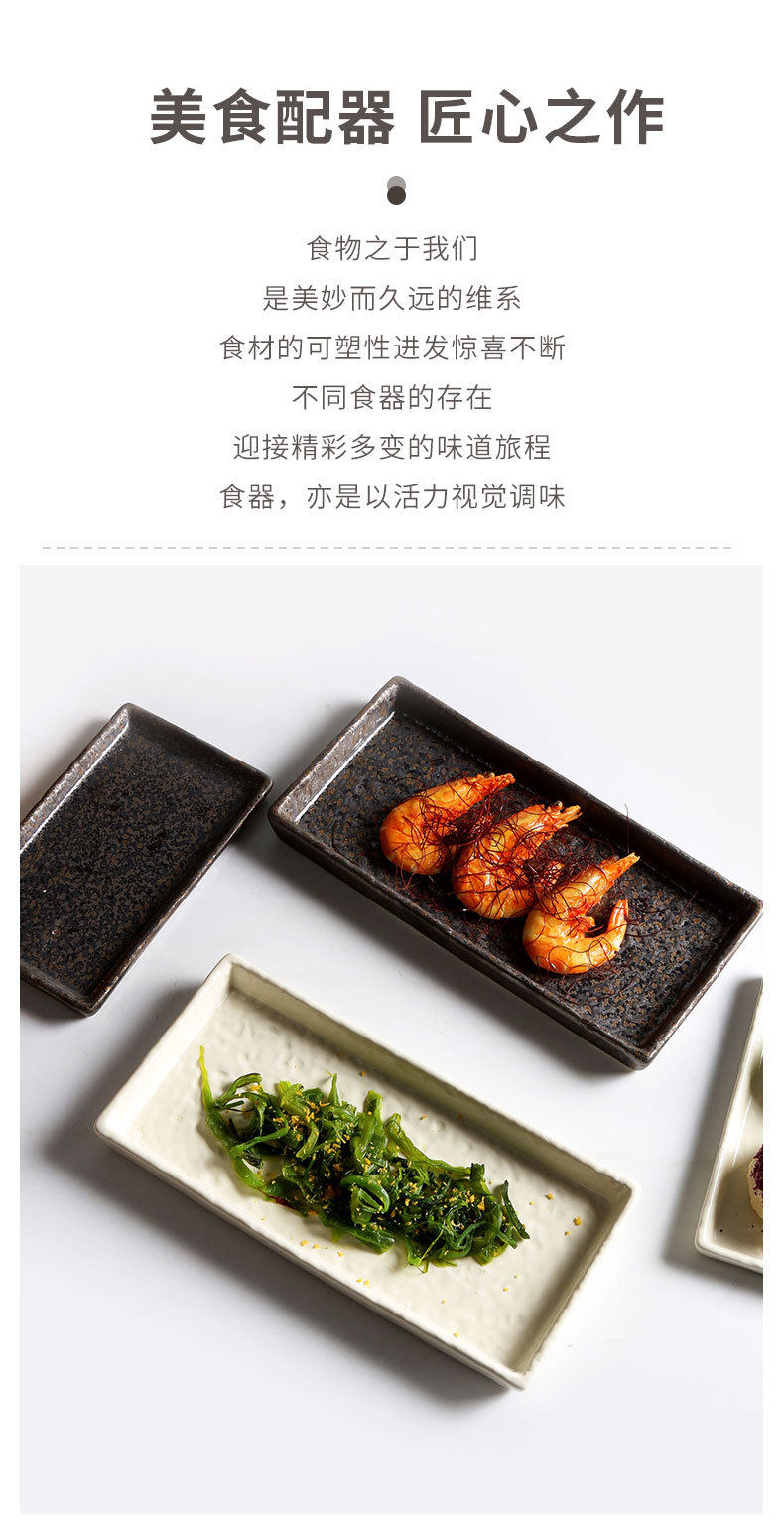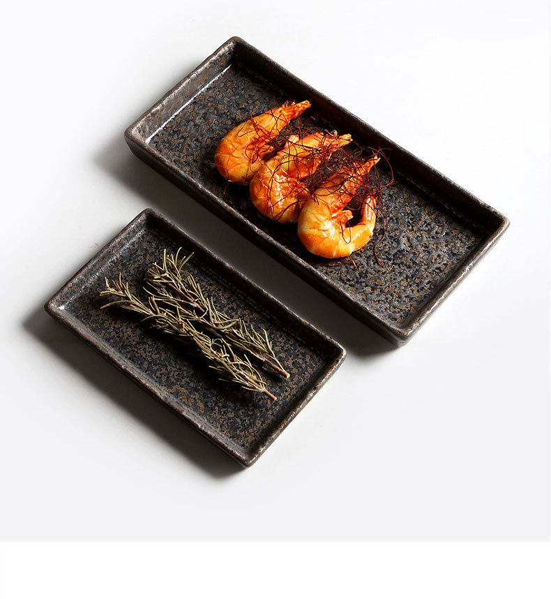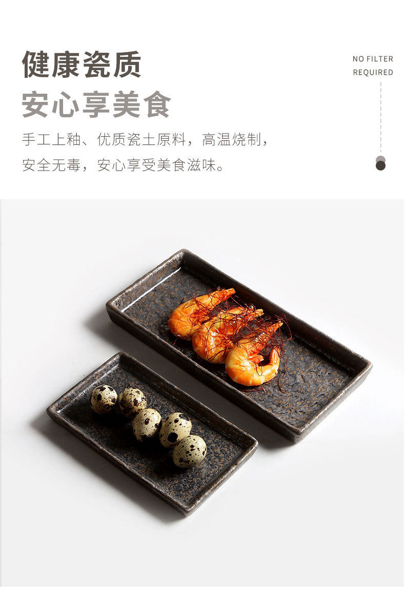 Jiutian Burned Ceramic Long Plate Japanese Style Sushi Naked Fish Plate Vintage Hammered Tray Featured Hotel Tableware