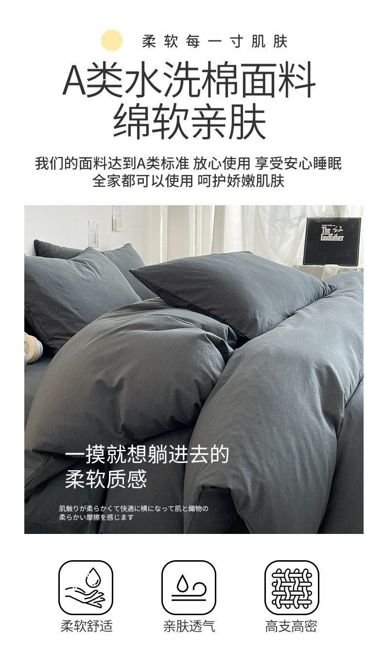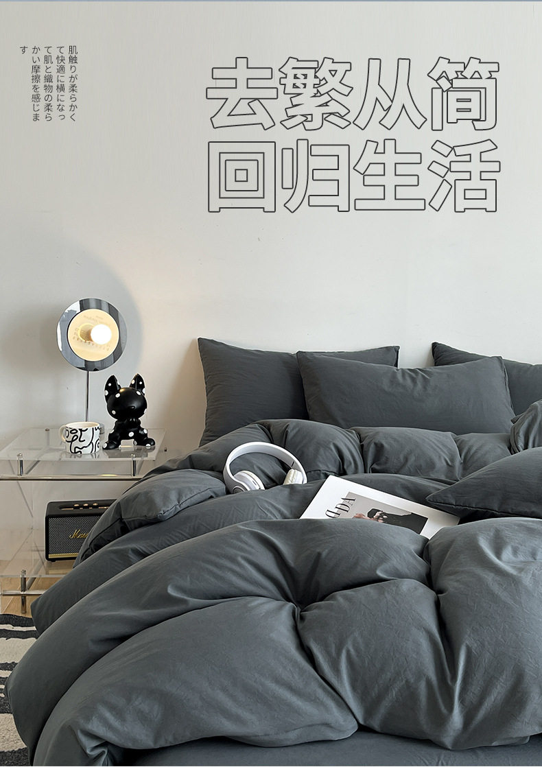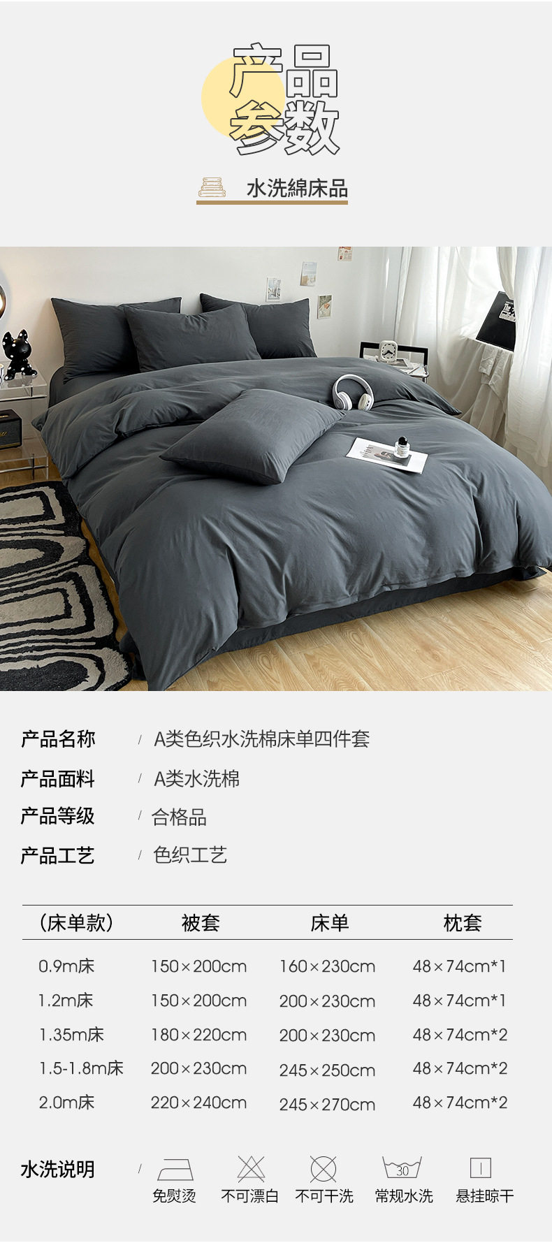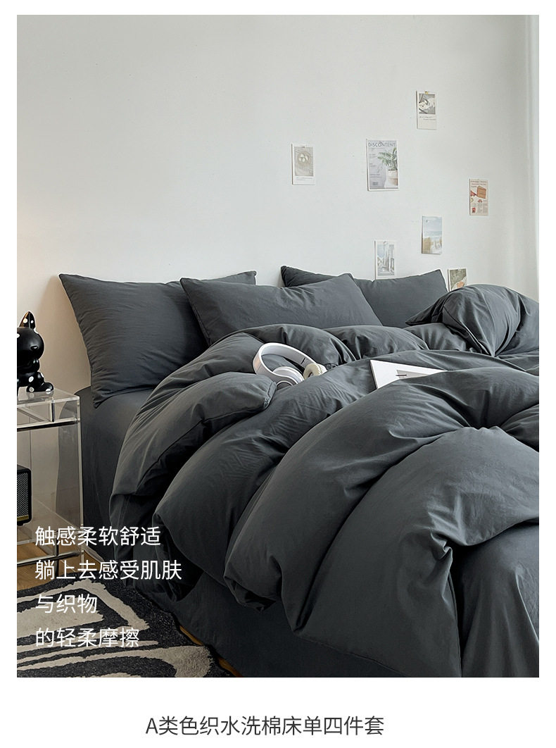 Class a 4-piece bed sheet quilt cover pillowcase simple solid color student dormitory wash cotton 3 3-piece set wholesale