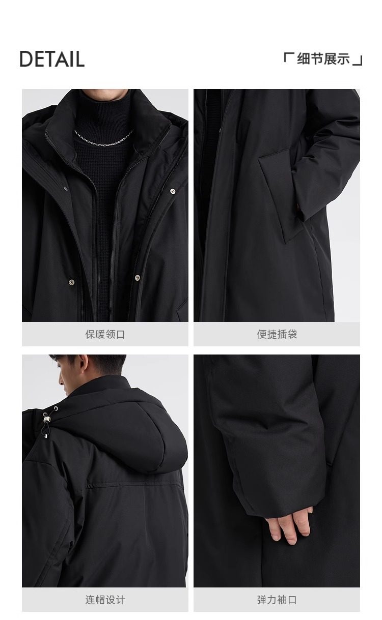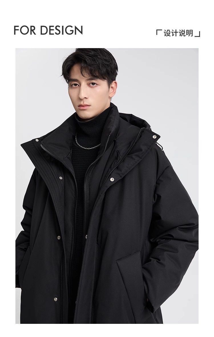 Shopping Mall Style 2024 Winter New High-End Hooded Mid-Length Parka down Jacket Men's Thickeneded Warm Jacket