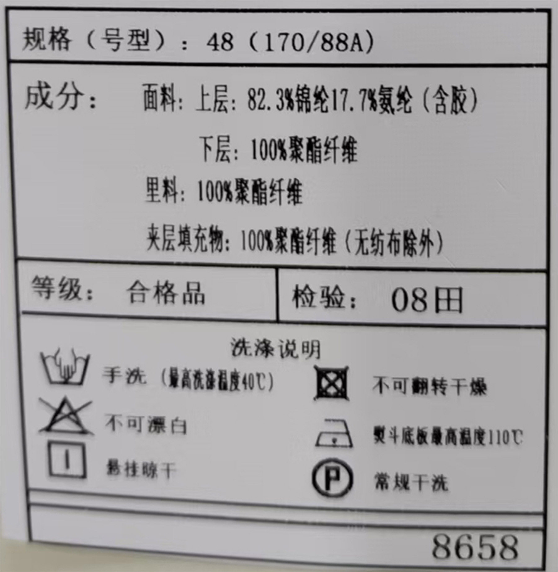 | Content of main fabric components | 82.3 |