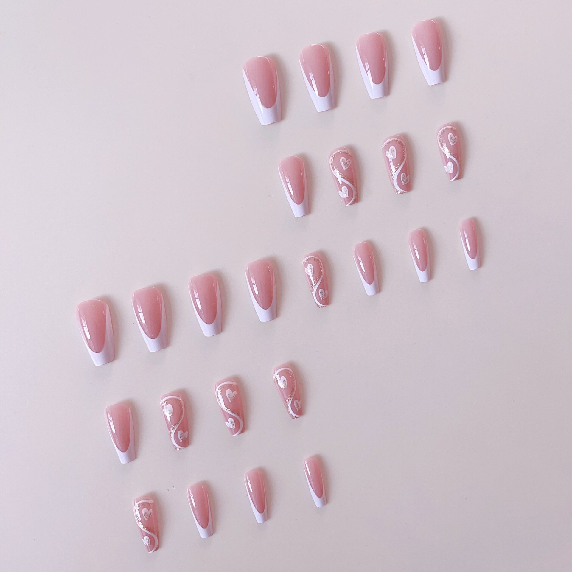 Valentine's Day Medium Golden Love European Square Nail White Stripe Golden French Edge Gentle Sweet Superior Nail