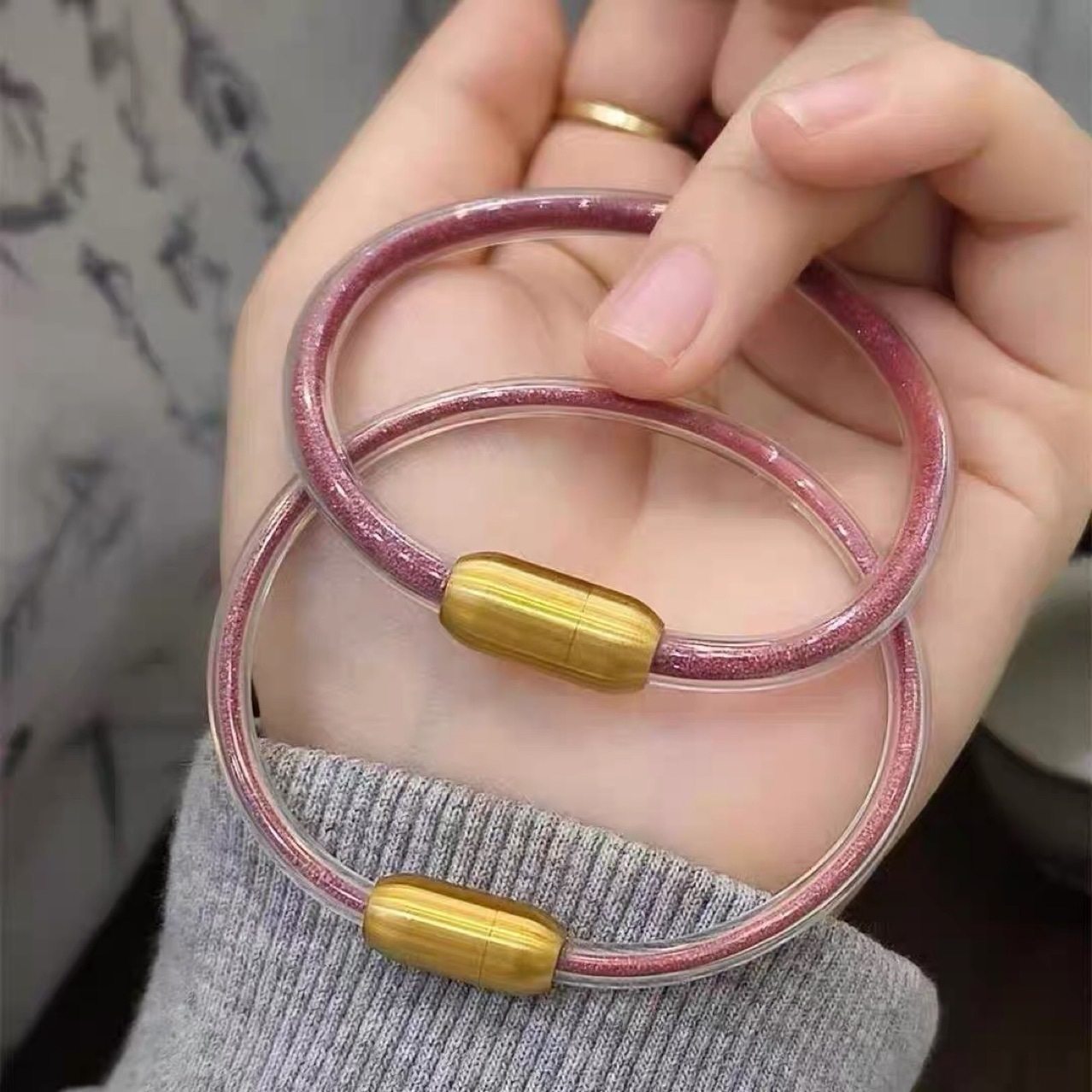 2025 Cinnabar Hose Bracelet DIY Benmingnian Acrylic Men's and Women's Bracelet Transparent Hollow Tube Bracelet with Pink and Purple