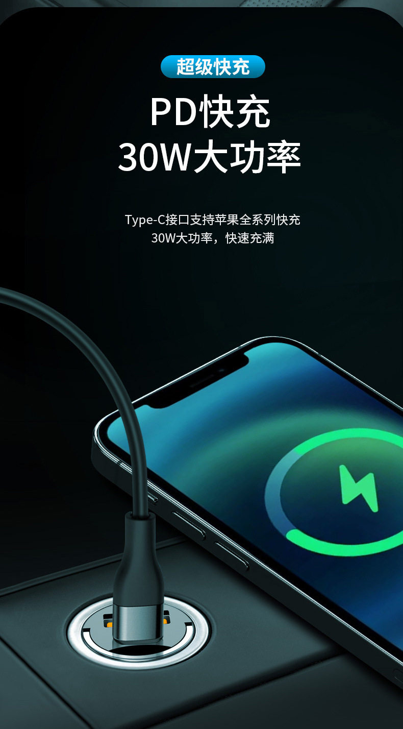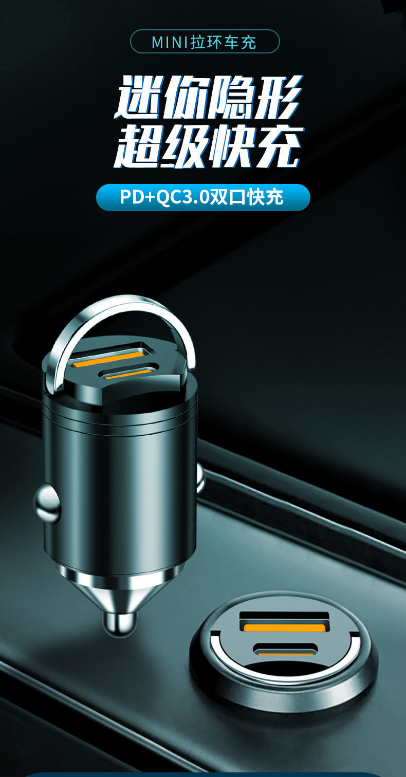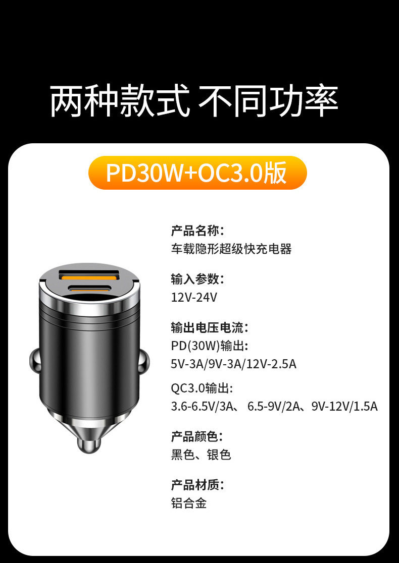Cross-border mini invisible PD30W car charger super fast charger car supplies cigarette lighter car mobile phone charger head