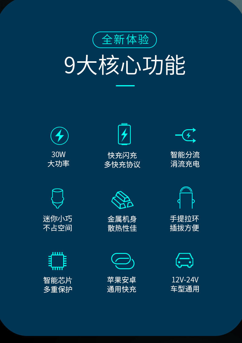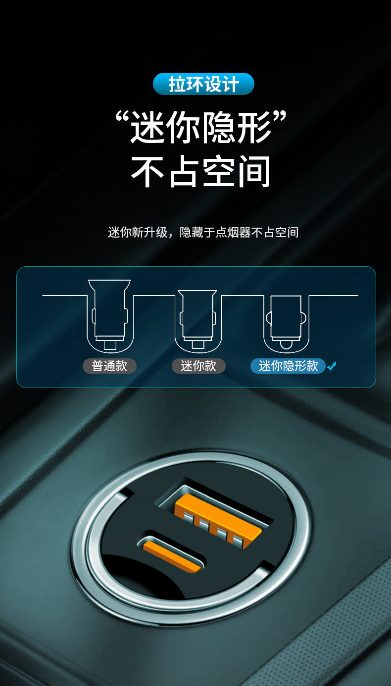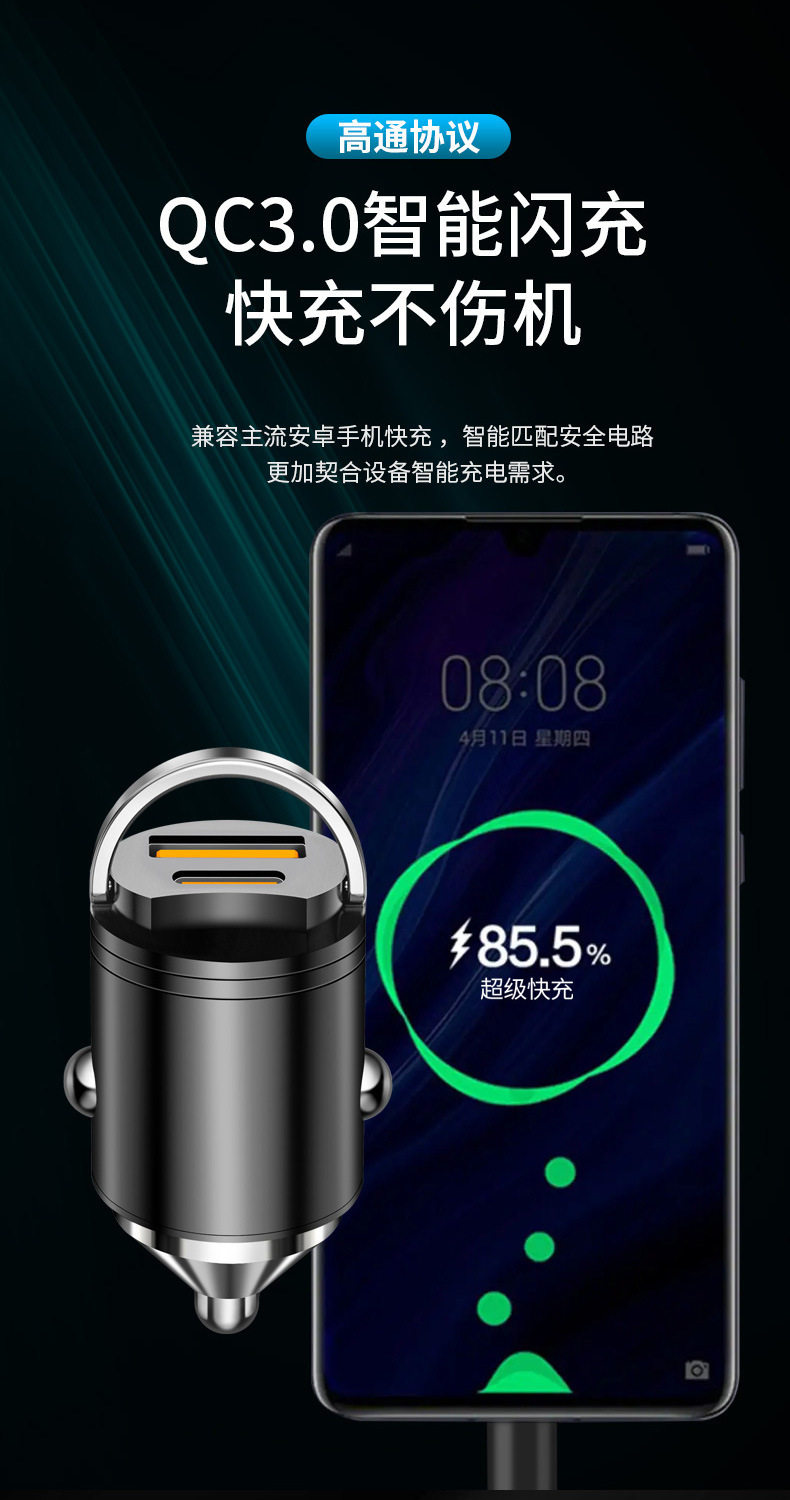 Cross-border mini invisible PD30W car charger super fast charger car supplies cigarette lighter car mobile phone charger head