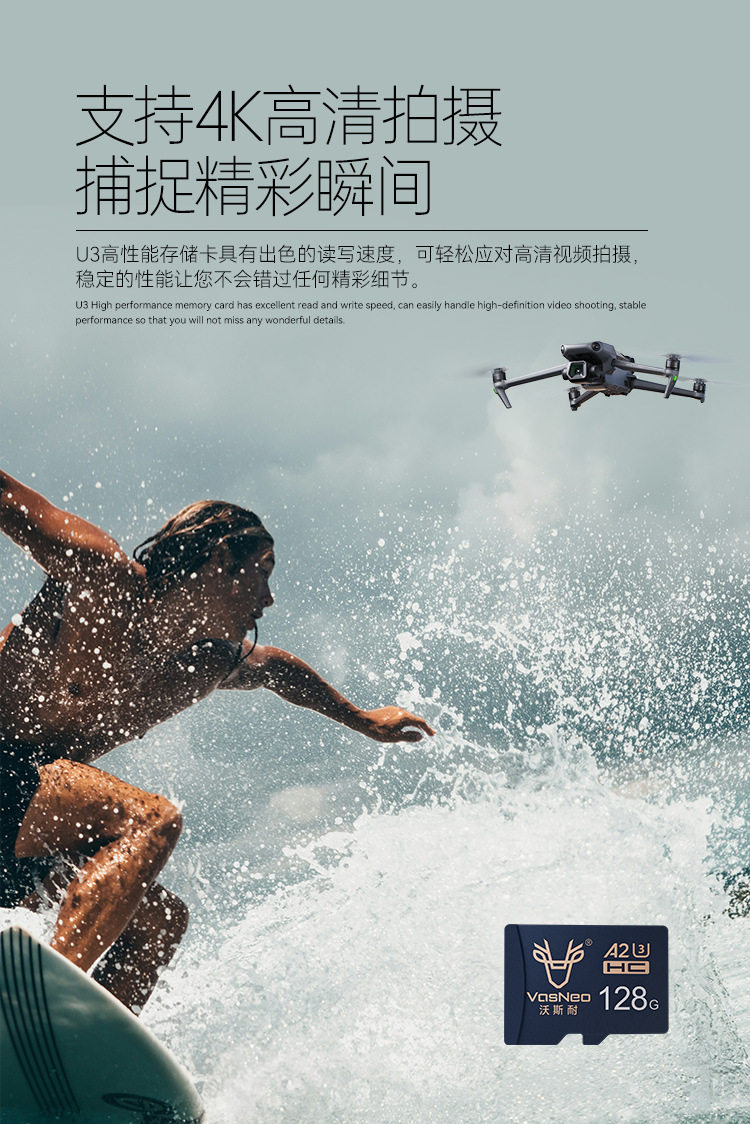 Vosnai TF Card 128g Drone Memory Card gopro High Speed V30 Camera switch Game Memory Card