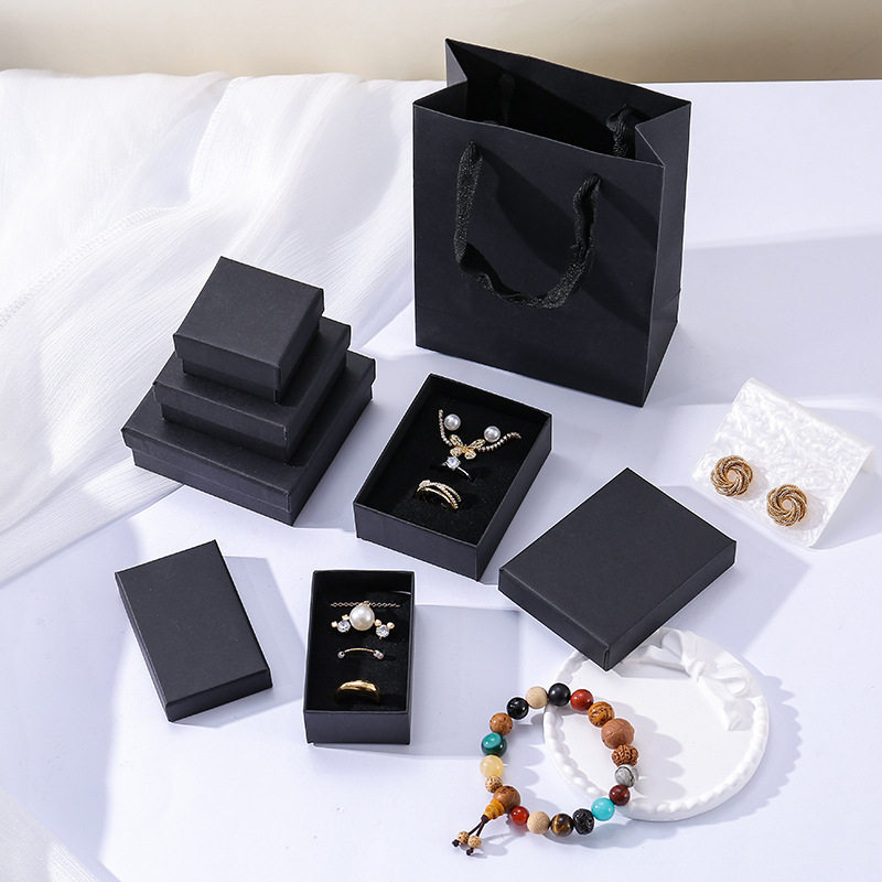 Black jewelry packaging box manufacturers in stock ring earring necklace pendant simple solid color jewelry gift box high
