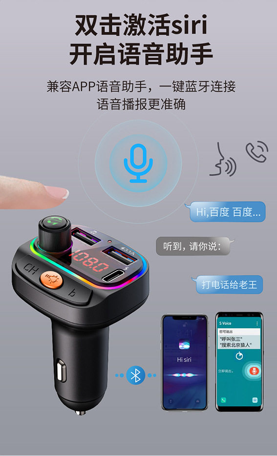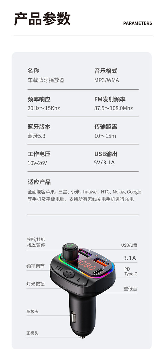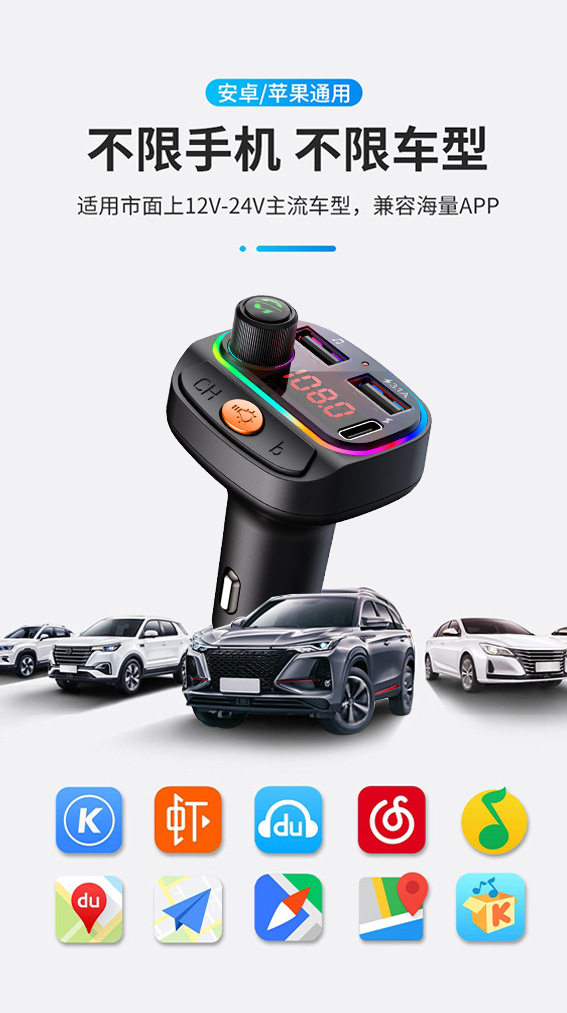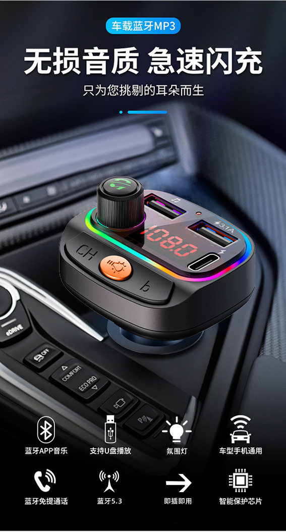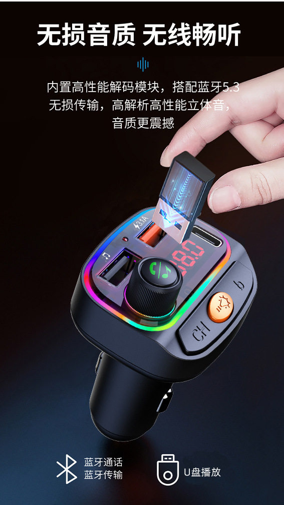 Car charger Bluetooth cigarette lighter Bluetooth 5.3 player lossless sound quality cigarette lighter adapter charger