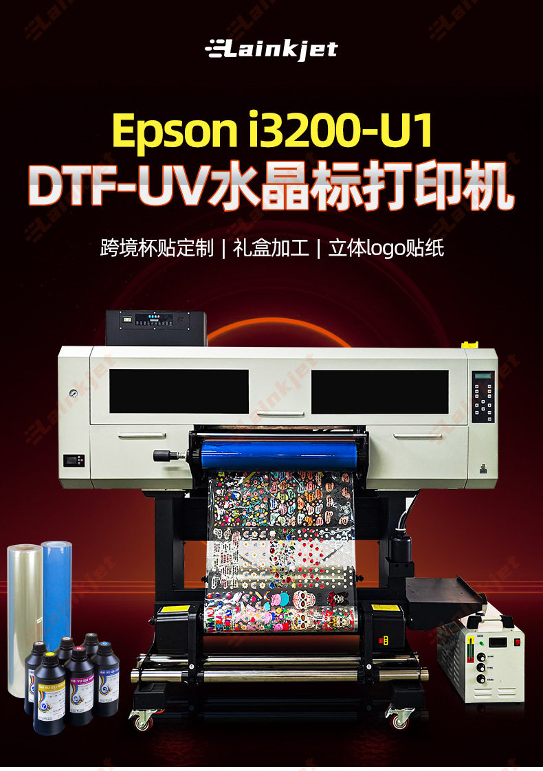 Uv Crystal Label Printer Automatic Lamination 4-Head Color White Color Varnish Name Sticker Transfer Sticker Digital Uv Printing