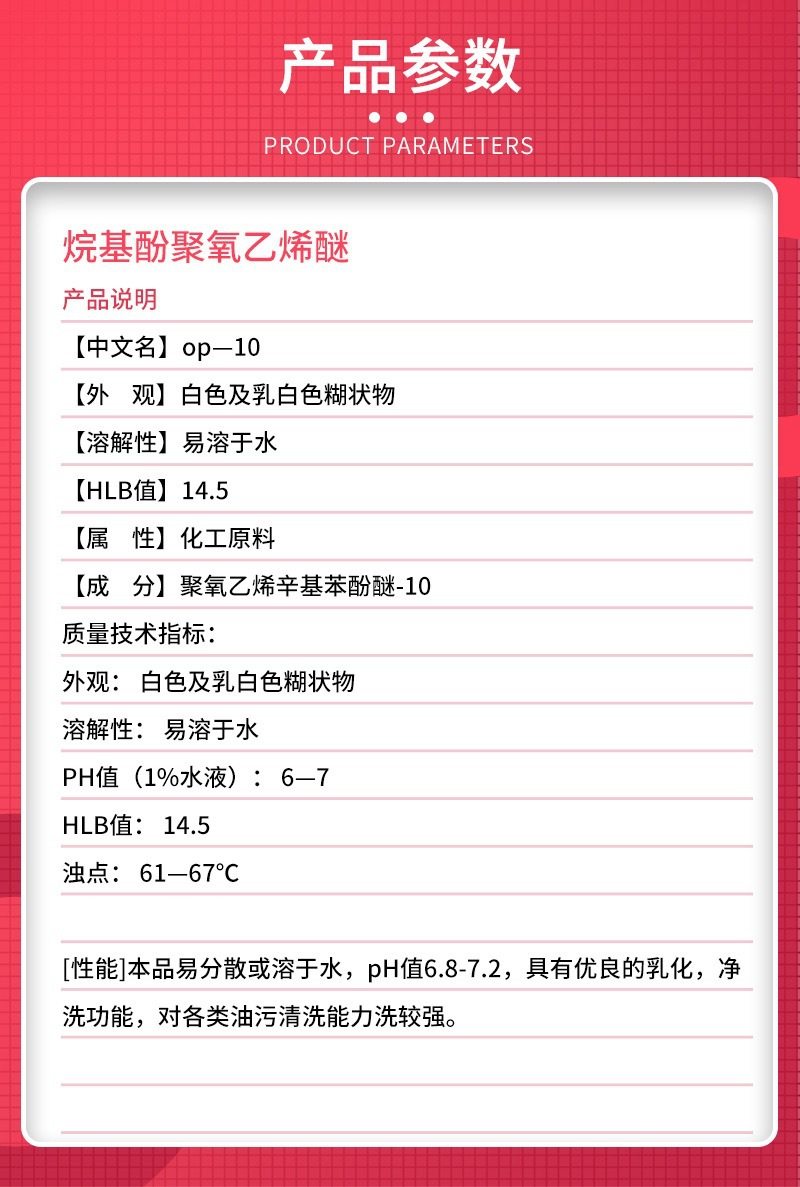 Op-10 Emulsifier Dishwashing Liquid Glass Raw Material Np-10 Surface Active Agent Daily Detergent Op-10