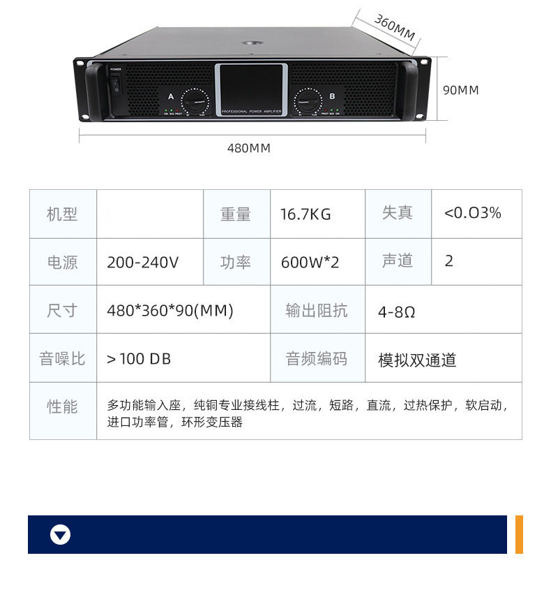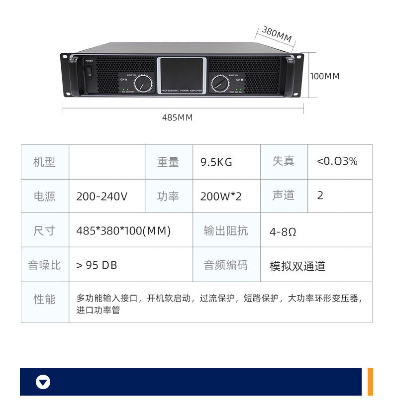 Cross-border 4000 high-power amplifier 200W * 2 pure post-stage power amplifier stage performance conference room professional power amplifier
