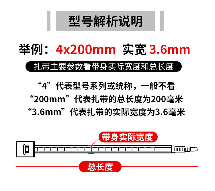 | Specifications and models | White; National standard 3*100 real width 2.5mm(1000 strips/bag),White; Non-standard 4*150 real width 2.7mm(1000 strips/bag),White; Non-standard 4*200 real width 2.7mm(500 strips/bag),White; non-standard 4*250 actual width 2.8mm (500 pieces/pack),White; National standard 4*150 real width 3.6mm(500 strips/bag),White; National standard 4*200 real width 3.6mm(500 strips/bag),White; National standard 4*250 real width 3.6mm(250 strips/bag),White; National standard 4*300 real width 3.6mm(250 strips/bag),White; Non-standard 6*200 real width 5.0mm(250 strips/bag),White; National standard 6*250 real width 5.2mm(250 strips/bag),White; National standard 6*300 real width 5.2mm(250 strips/bag),White; National standard 6*350 real width 5.2mm(250 strips/bag),White; National standard 6*400 real width 5.2mm(250 strips/bag),White; National standard 8*200 real width 7.5mm(100 strips/bag),White; National standard 8*250 real width 7.5mm(100 strips/bag),White; National standard 8*300 real width 7.5mm(100 strips/bag),White; National standard 8*350 real width 7.5mm(100 strips/bag),White; National standard 8*400 real width 7.5mm(100 strips/bag),White; National standard 8*500 real width 7.5mm(100 strips/bag),Black; National standard 3*100 real width 2.5mm(1000 strips/bag),Black; Non-standard 4*150 real width 2.7mm(1000 strips/bag),Black; Non-standard 4*200 real width 2.7mm(500 strips/bag),Black; non-standard 4*250 actual width 2.8mm (500 pieces/pack),Black; National standard 4*150 real width 3.6mm(500 strips/bag),Black; National standard 4*200 real width 3.6mm(500 strips/bag),Black; National standard 4*250 real width 3.6mm(250 strips/bag),Black; National standard 4*300 real width 3.6mm(250 strips/bag),Black; Non-standard 6*200 real width 5.0mm(250 strips/bag),Black; National standard 6*250 real width 5.2mm(250 strips/bag),Black; National standard 6*300 real width 5.2mm(250 strips/bag),Black; National standard 6*350 real width 5.2mm(250 strips/bag),Black; National standard 6*400 real width 5.2mm(250 strips/bag),Black; National standard 8*200 real width 7.5mm(100 strips/bag),Black; National standard 8*250 real width 7.5mm(100 strips/bag),Black; National standard 8*300 real width 7.5mm(100 strips/bag),Black; National standard 8*350 real width 7.5mm(100 strips/bag),Black; National standard 8*400 real width 7.5mm(100 strips/bag),Black; National standard 8*500 real width 7.5mm(100 strips/bag) |