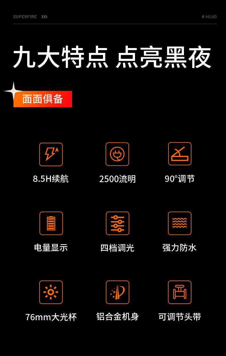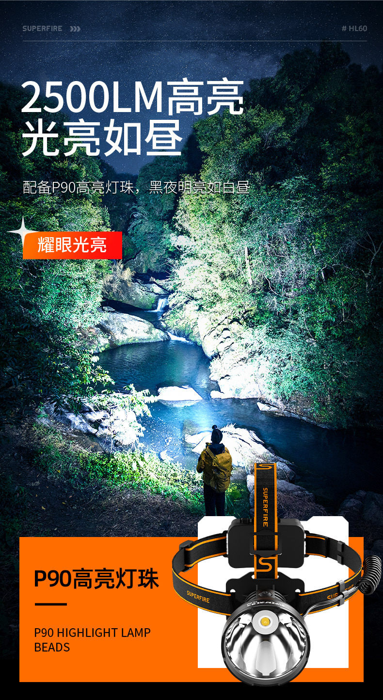 | Color | Hl60 (36w+8000mah+8.5 hours of battery life) |