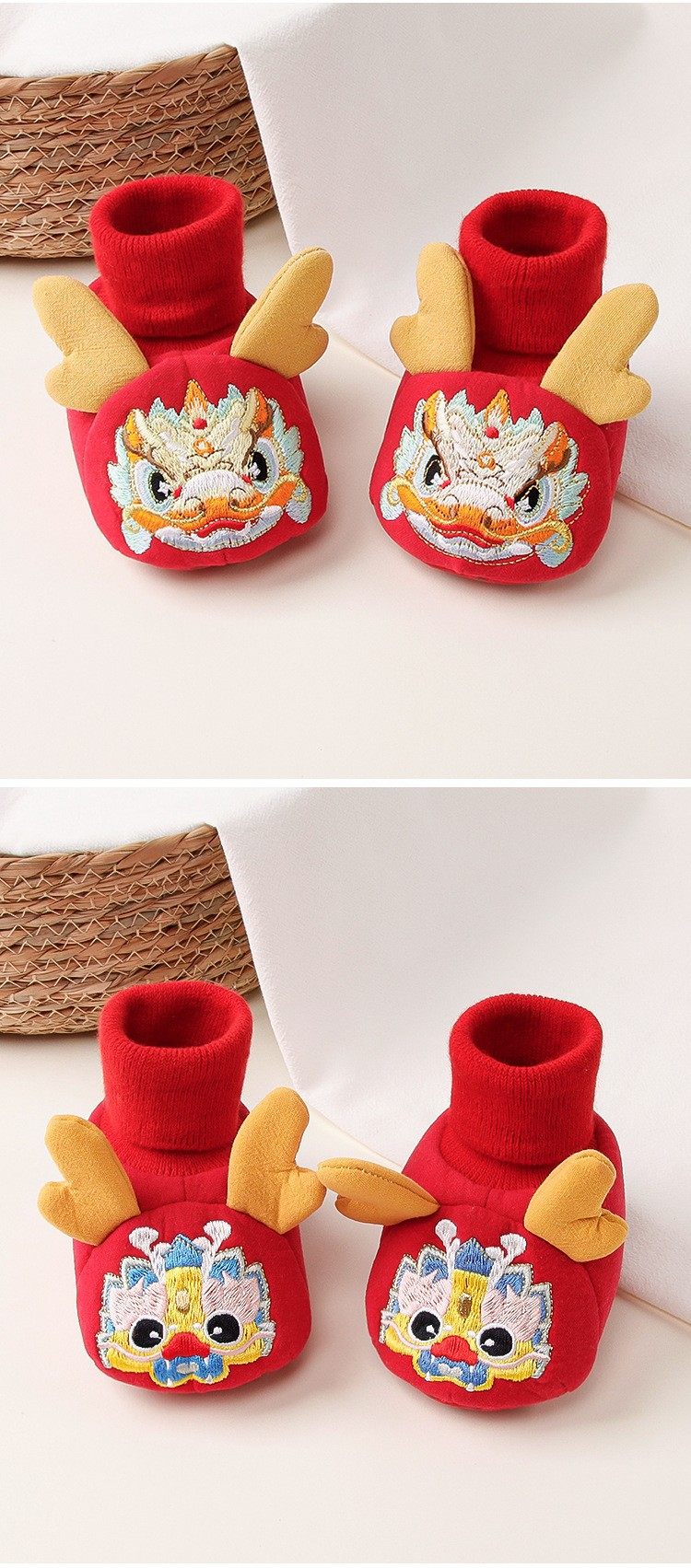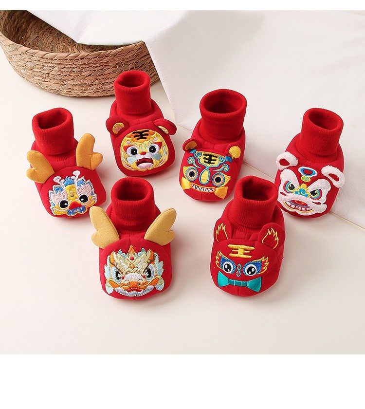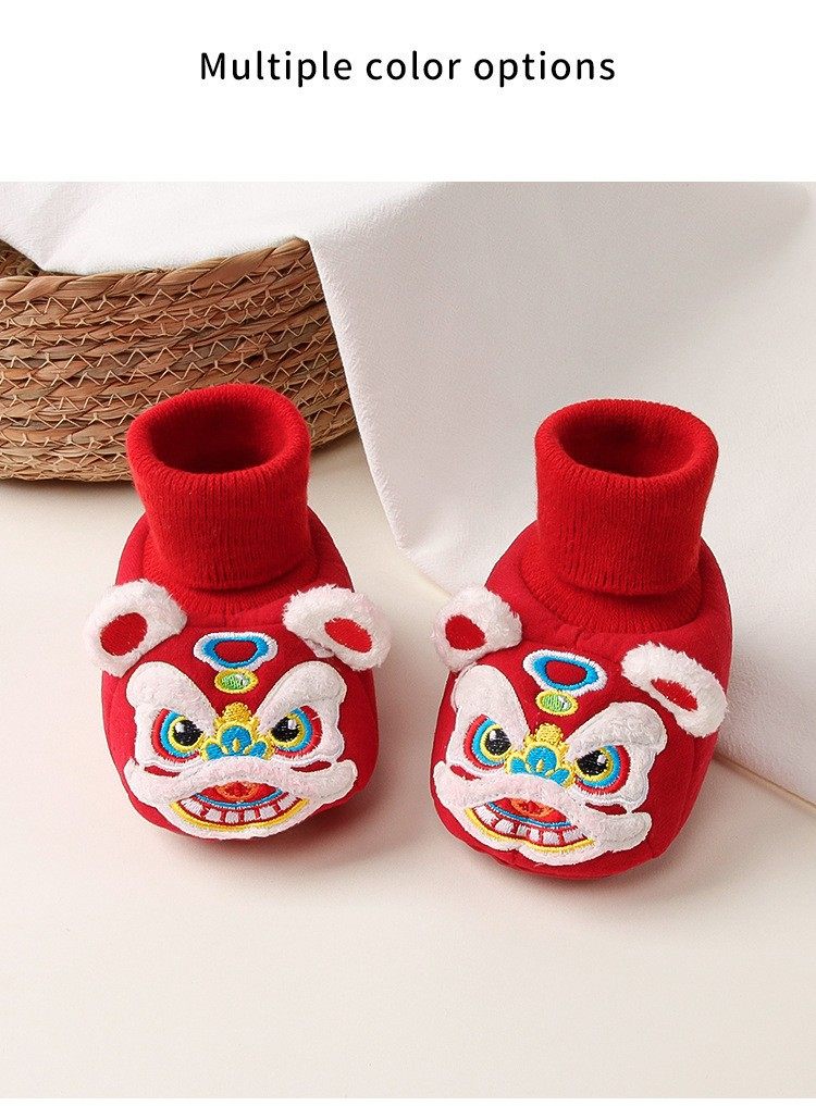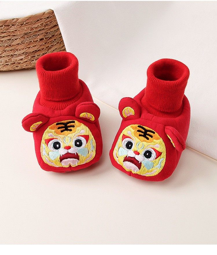 National Trendy Dragon Tiger Head Socks Shoes Baby Red Full Moon Grab Week Soft Bottom Tiger Head Cotton Shoes Chinese Style Baby Floor Socks 194