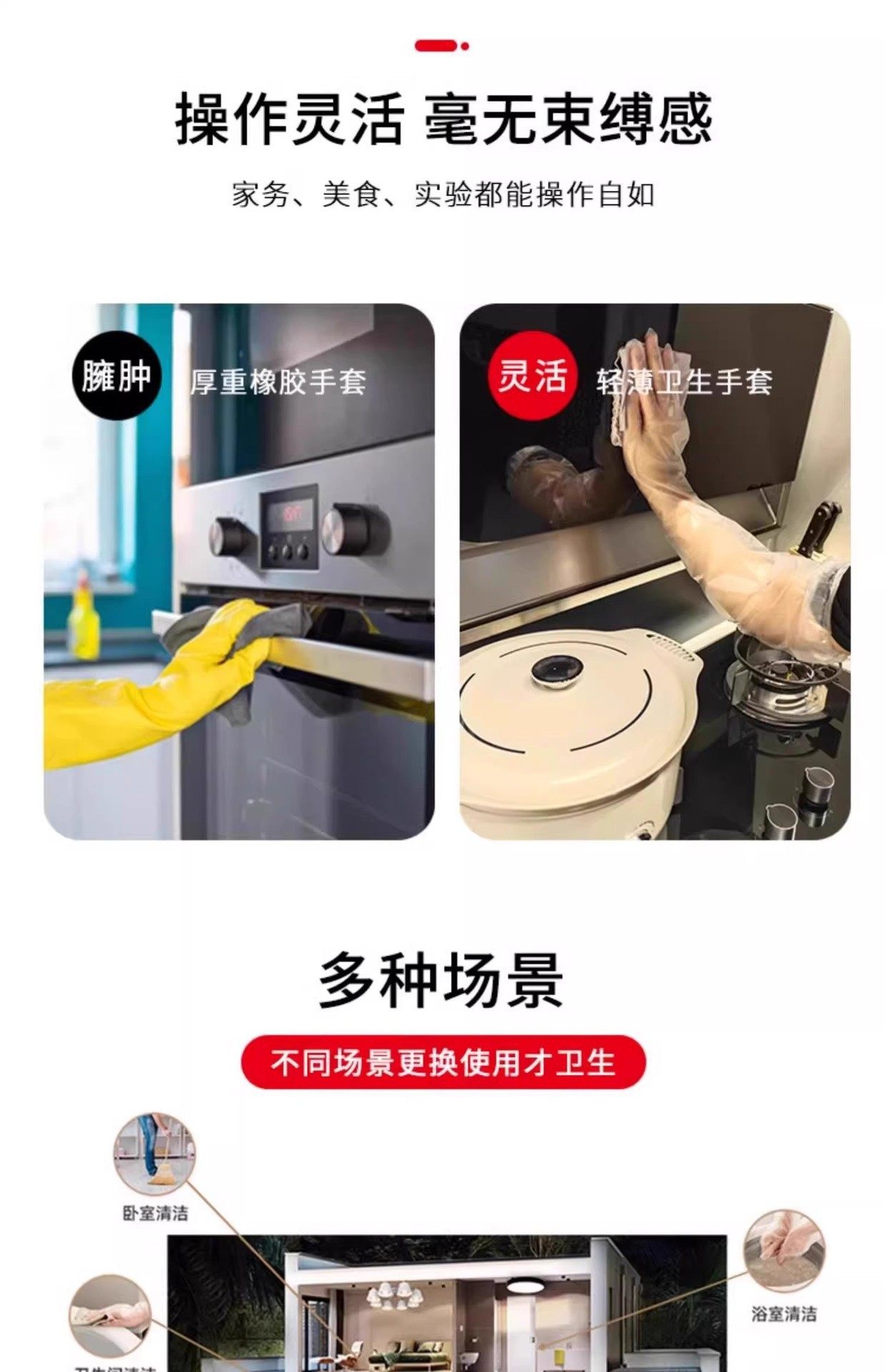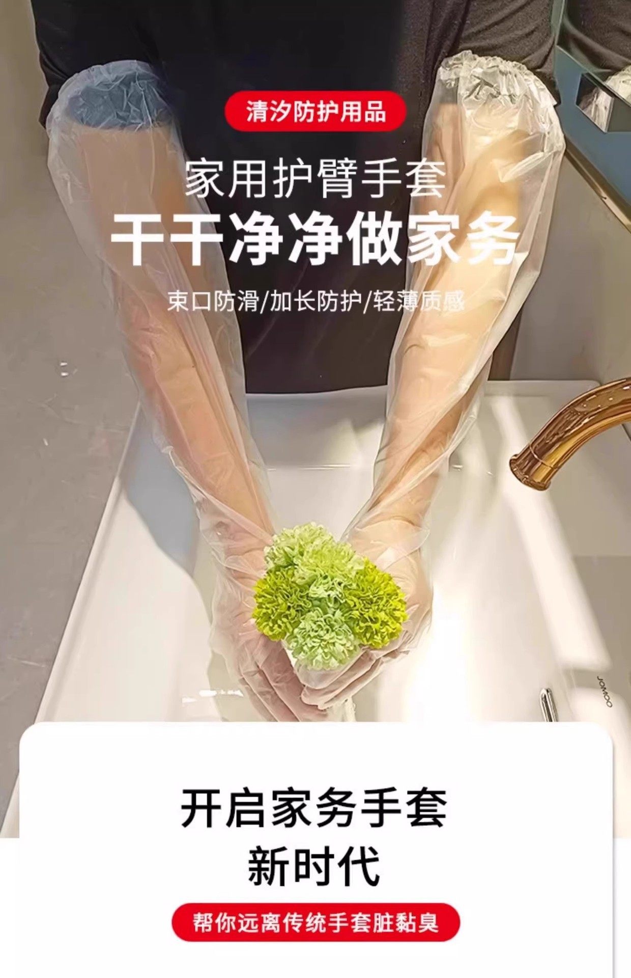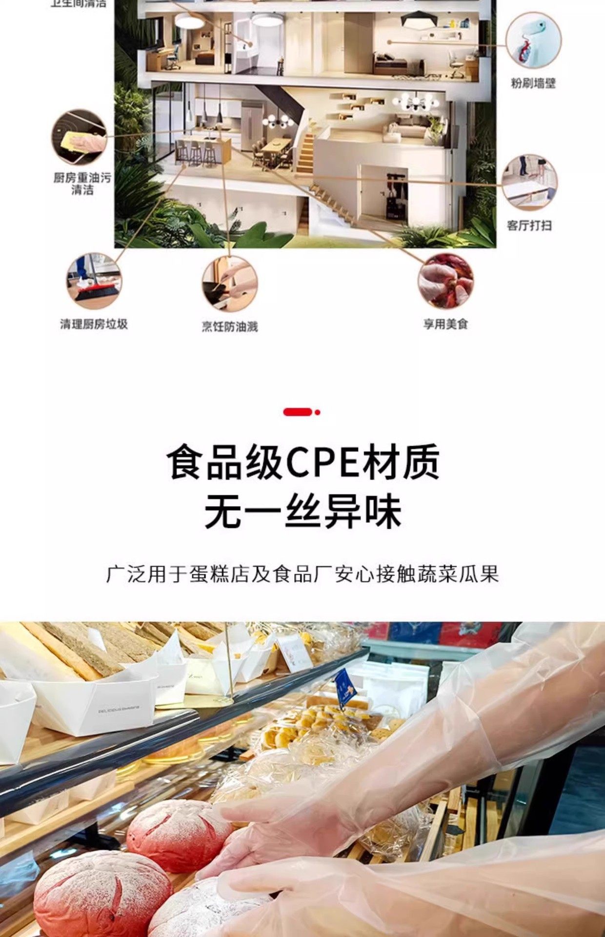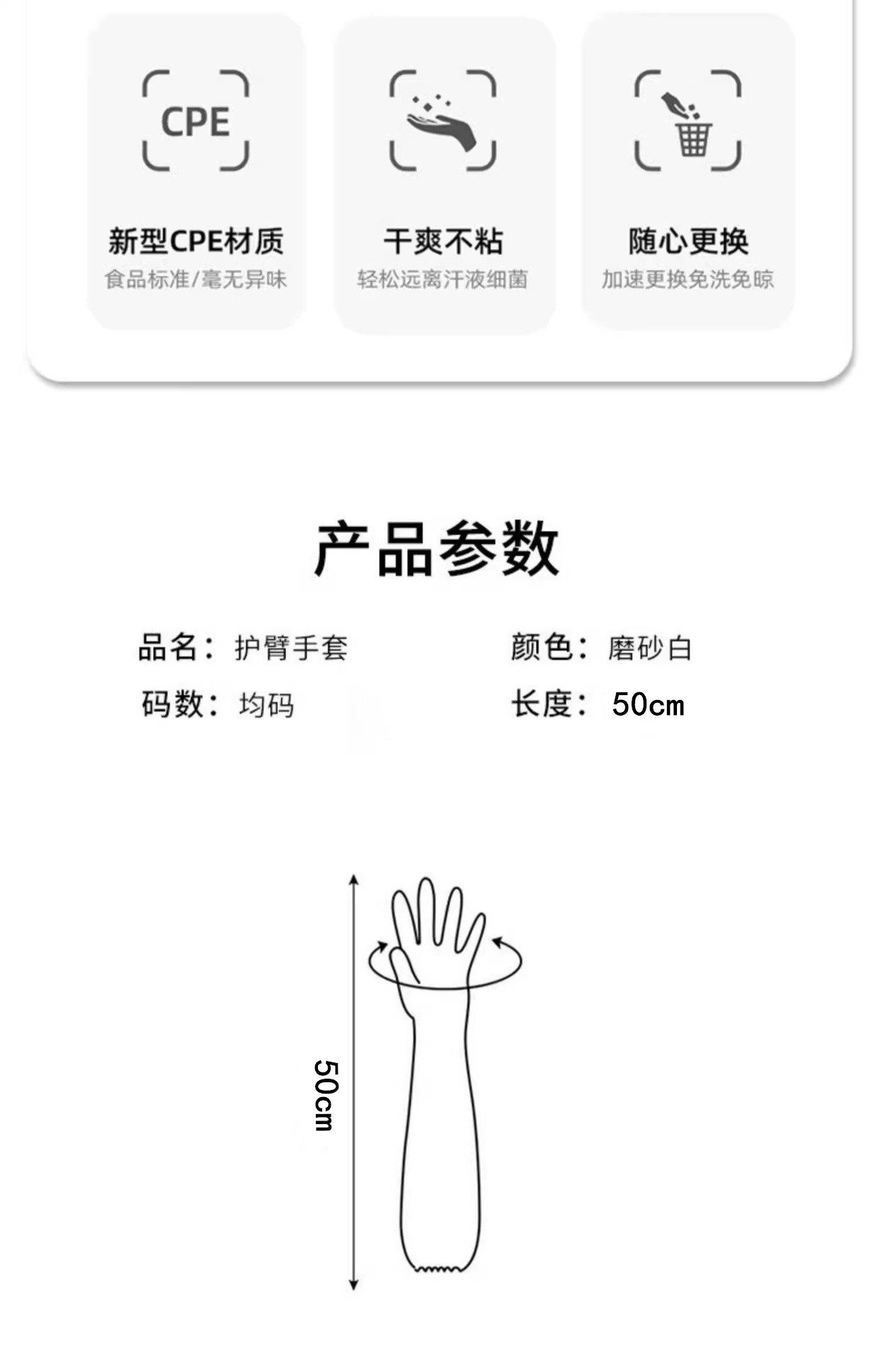 Long Sleeve Disposable Gloves Stretch Elastic Girdle PE Food Housekeeping Washing Dishes Cleaning Two-in-One Sleeve Gloves