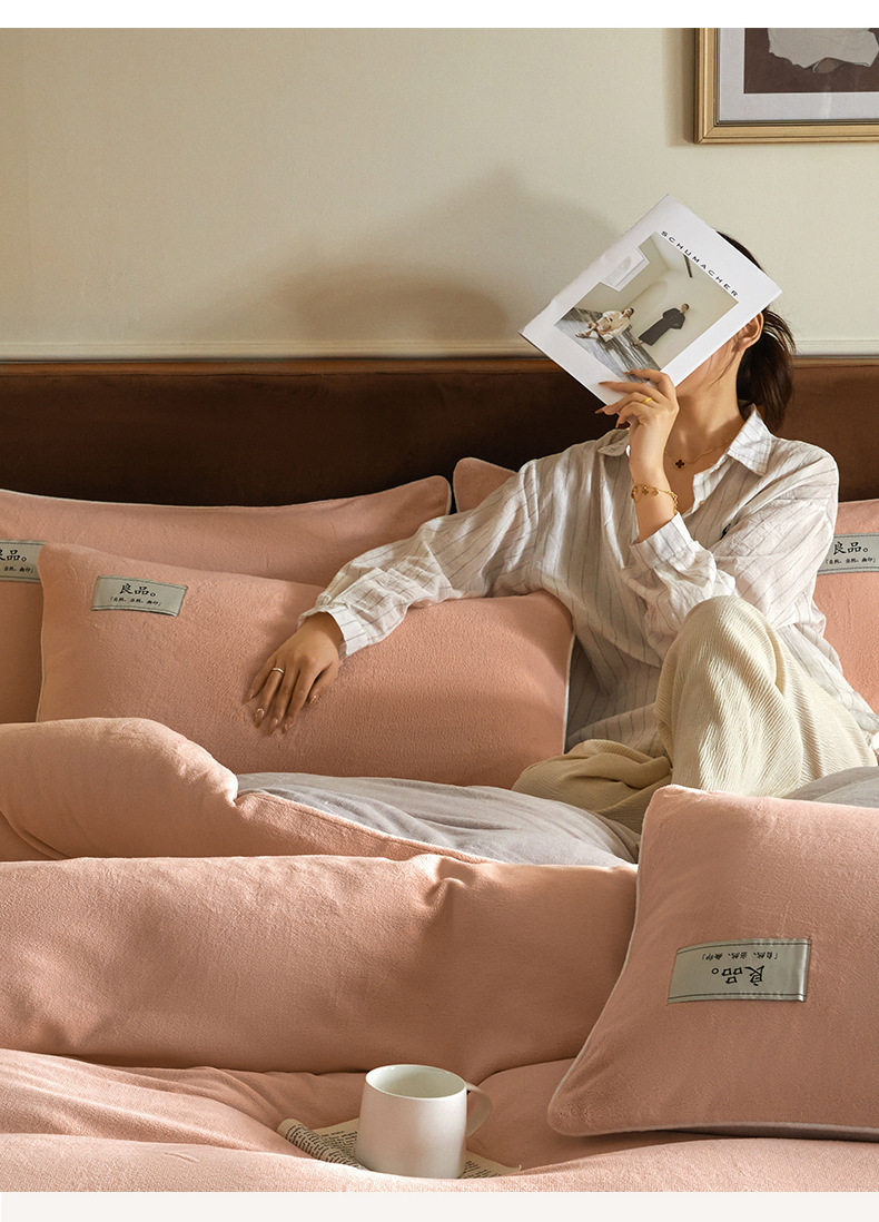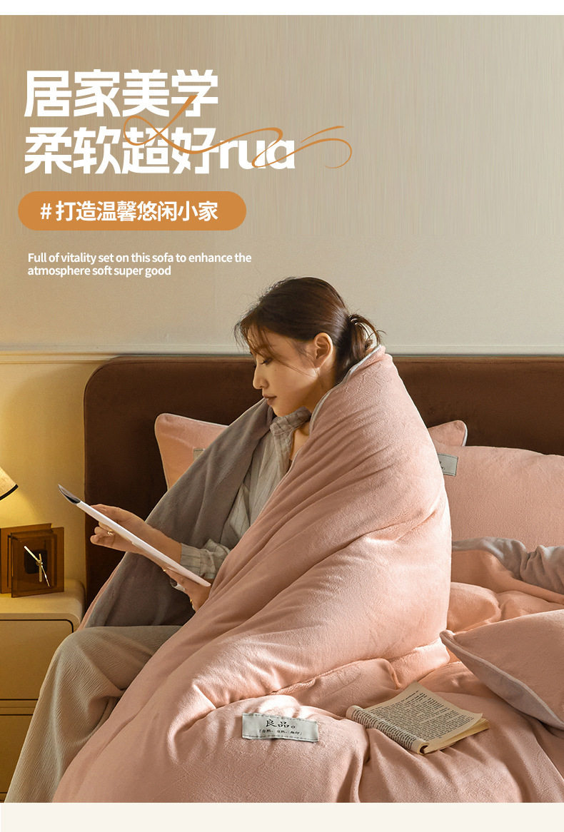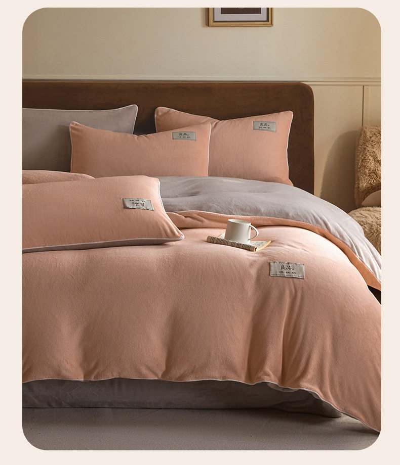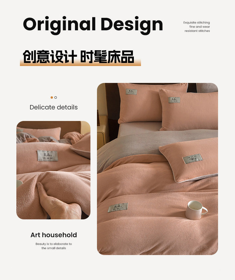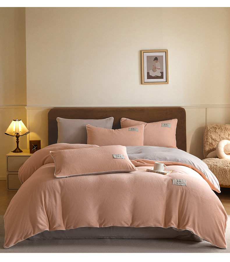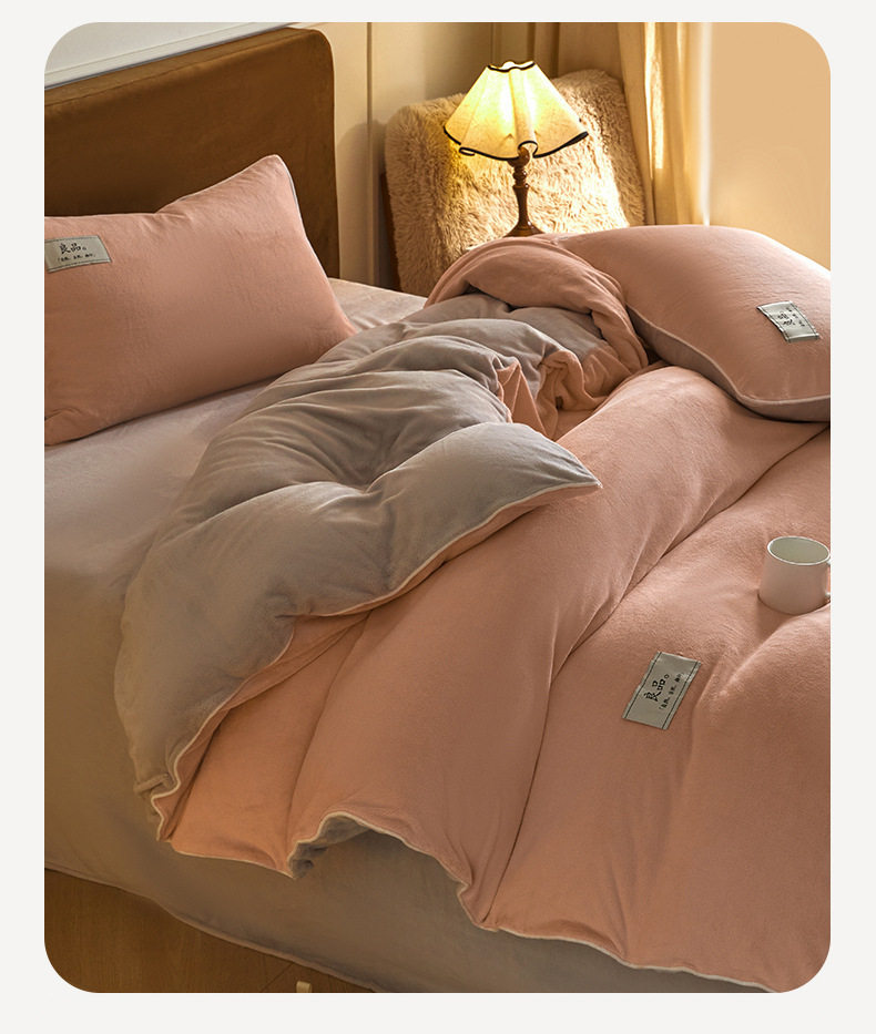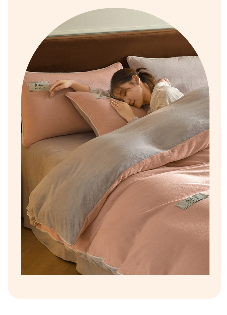 Milk Velvet Bed Four-piece Coral Velvet Winter fleece-lined Bed Sheet Quilt Cover Flannel Bedding Three-piece Bed Cover