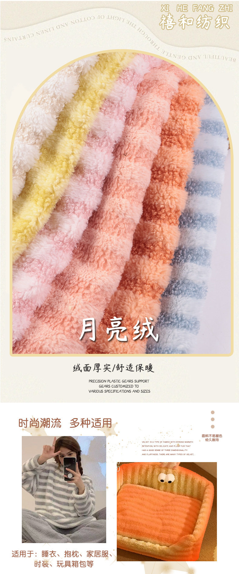 in stock two-color striped moon velvet small rabbit fur teddy velvet interwoven vertical strip lamb velvet pet dog kennel shoe material