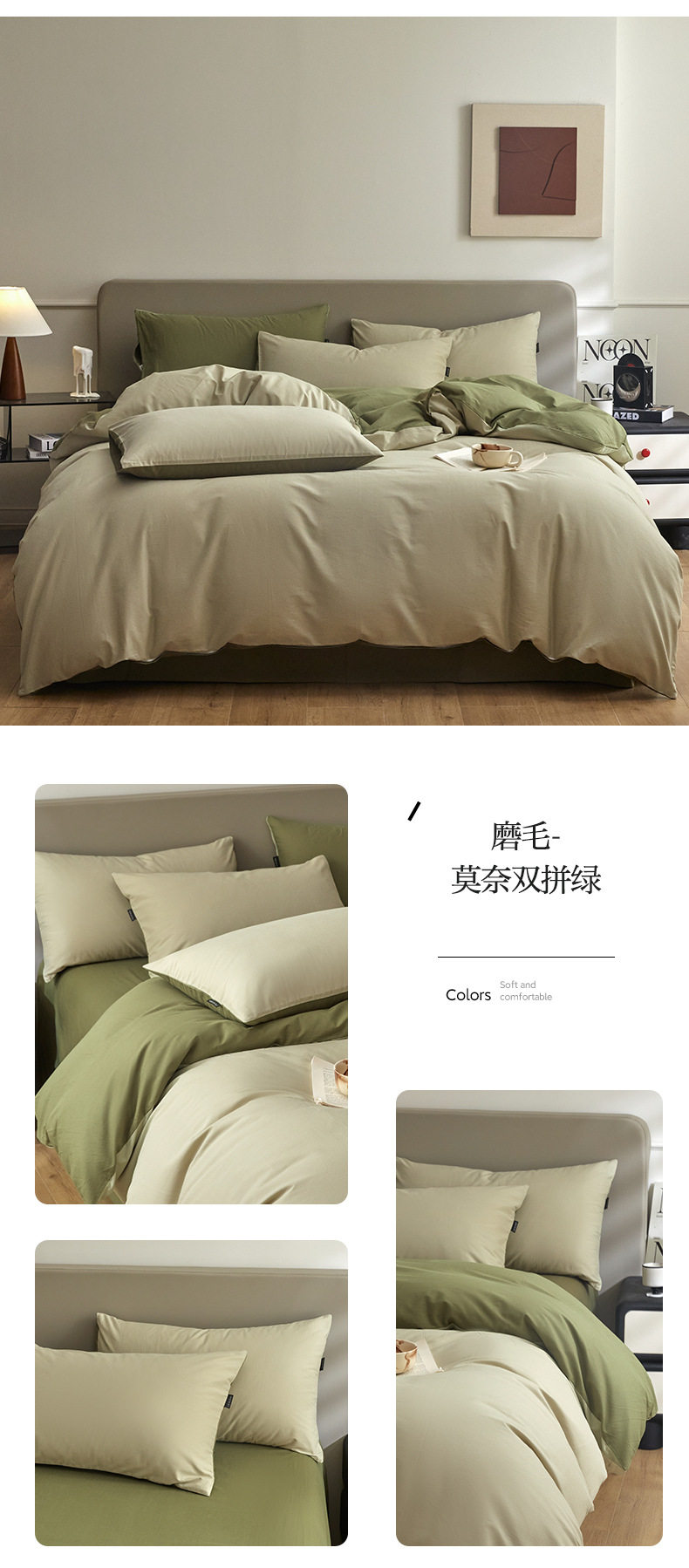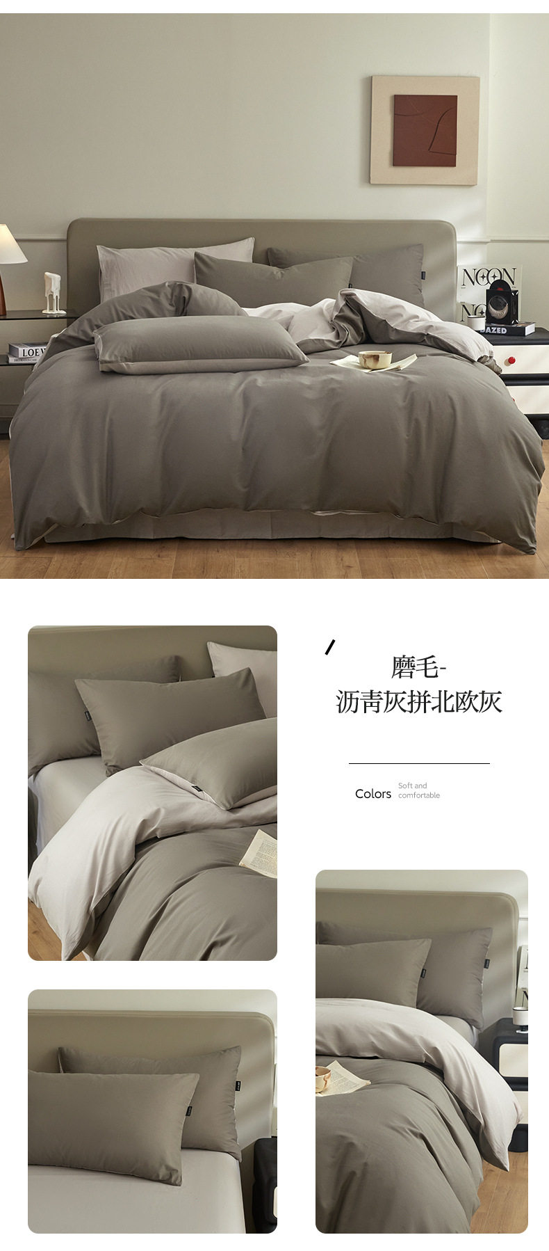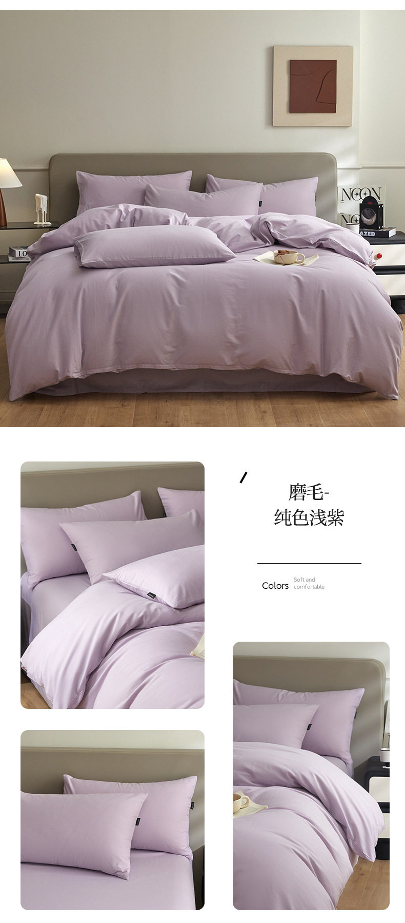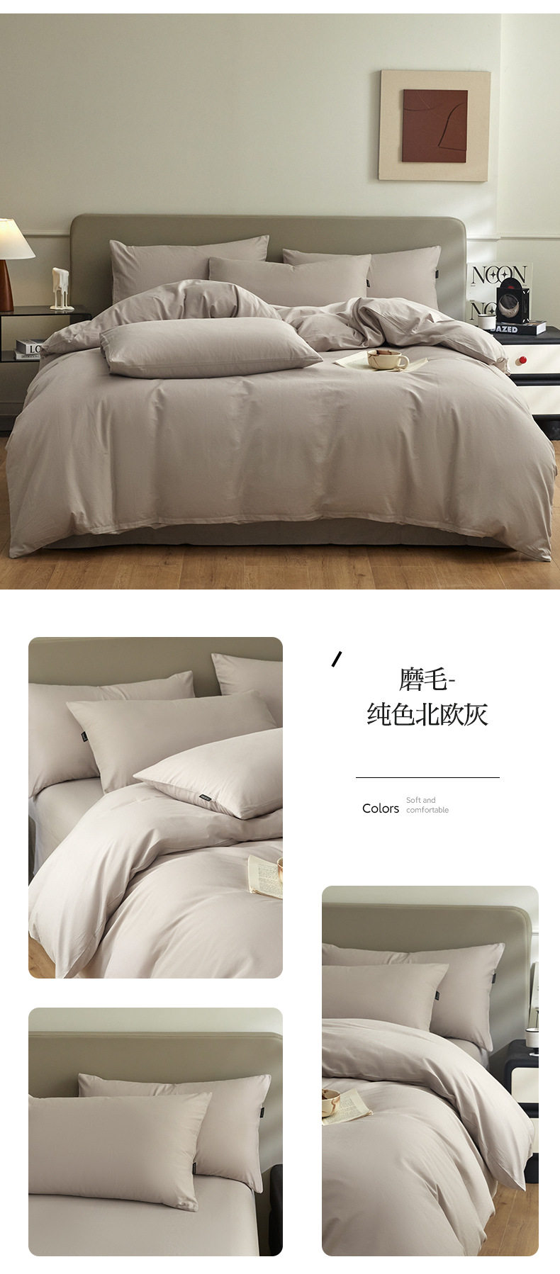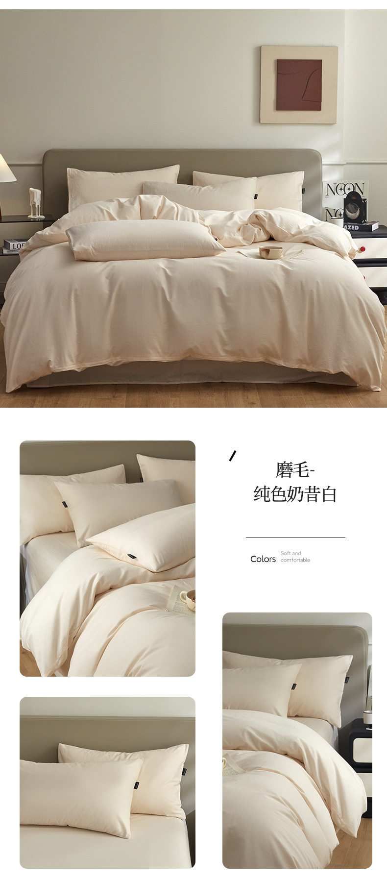Simple Class A Solid Color Cotton Sanding Four-piece Set Baby Grade Thickened Cotton Three-piece Set Light Luxury Bed Sheet Quilt Cover