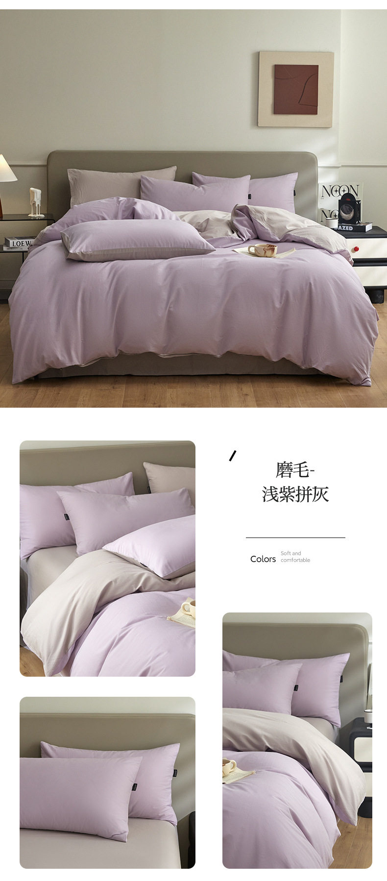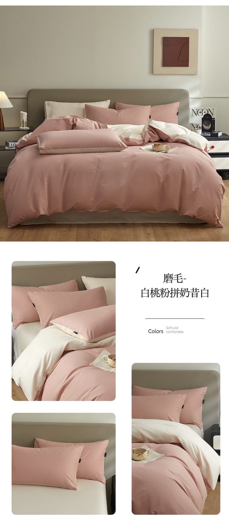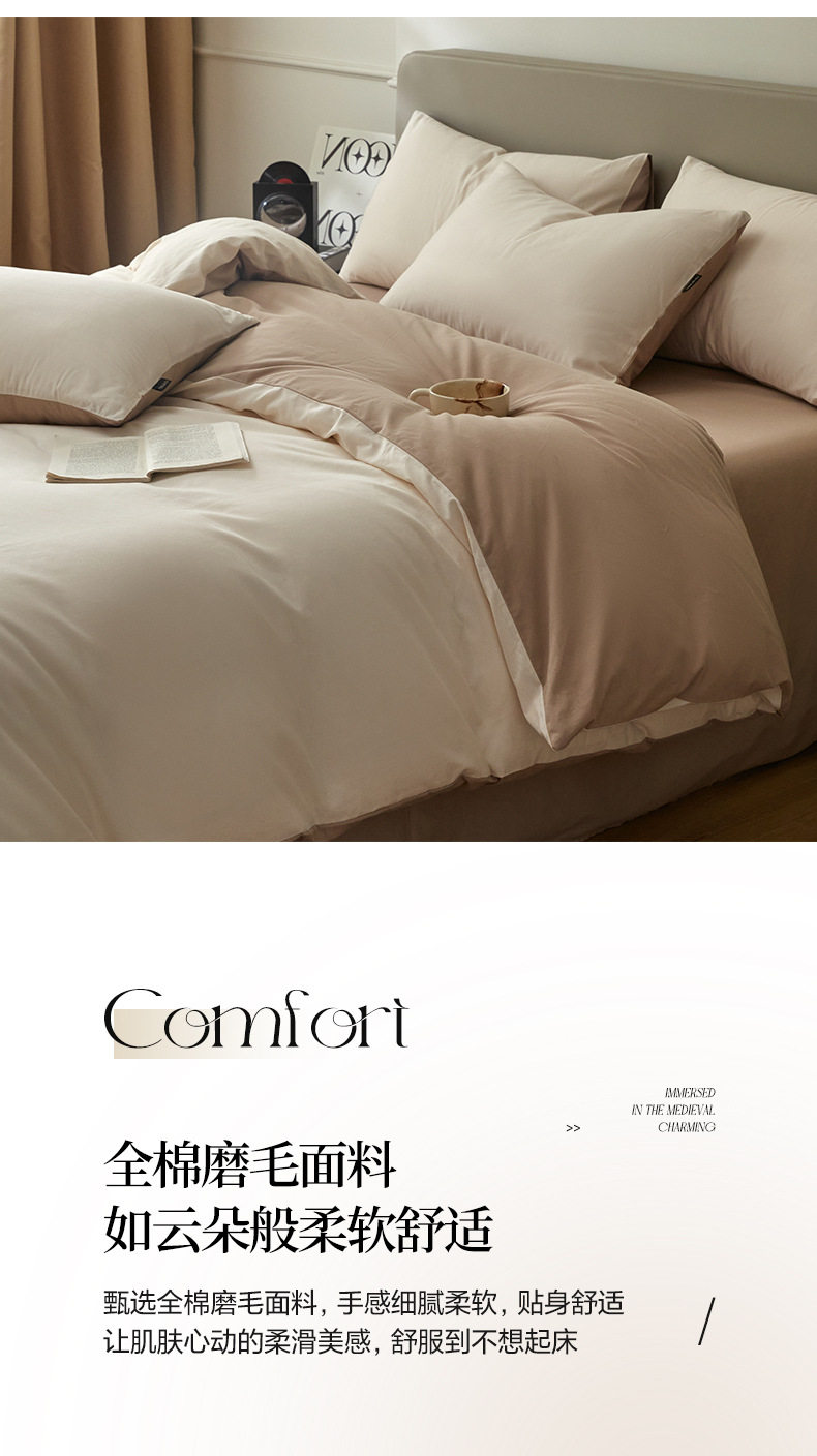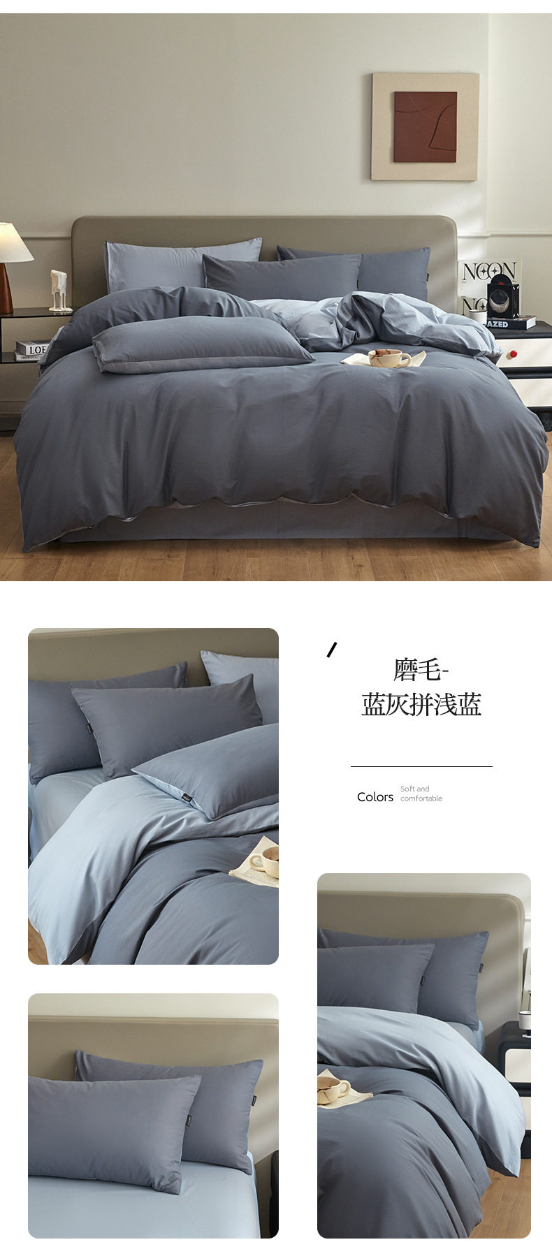 Simple Class A Solid Color Cotton Sanding Four-piece Set Baby Grade Thickened Cotton Three-piece Set Light Luxury Bed Sheet Quilt Cover