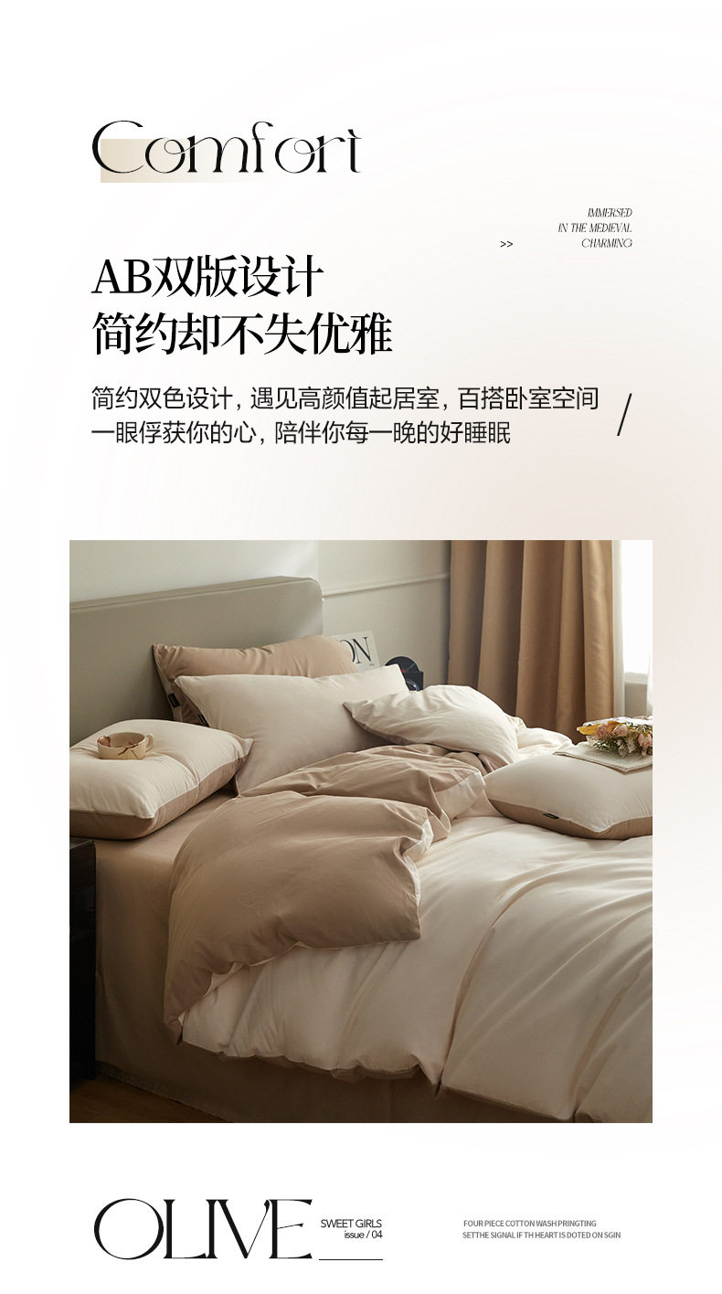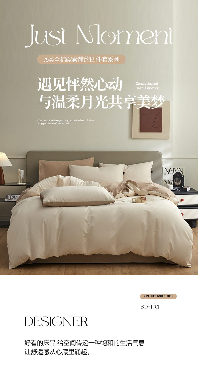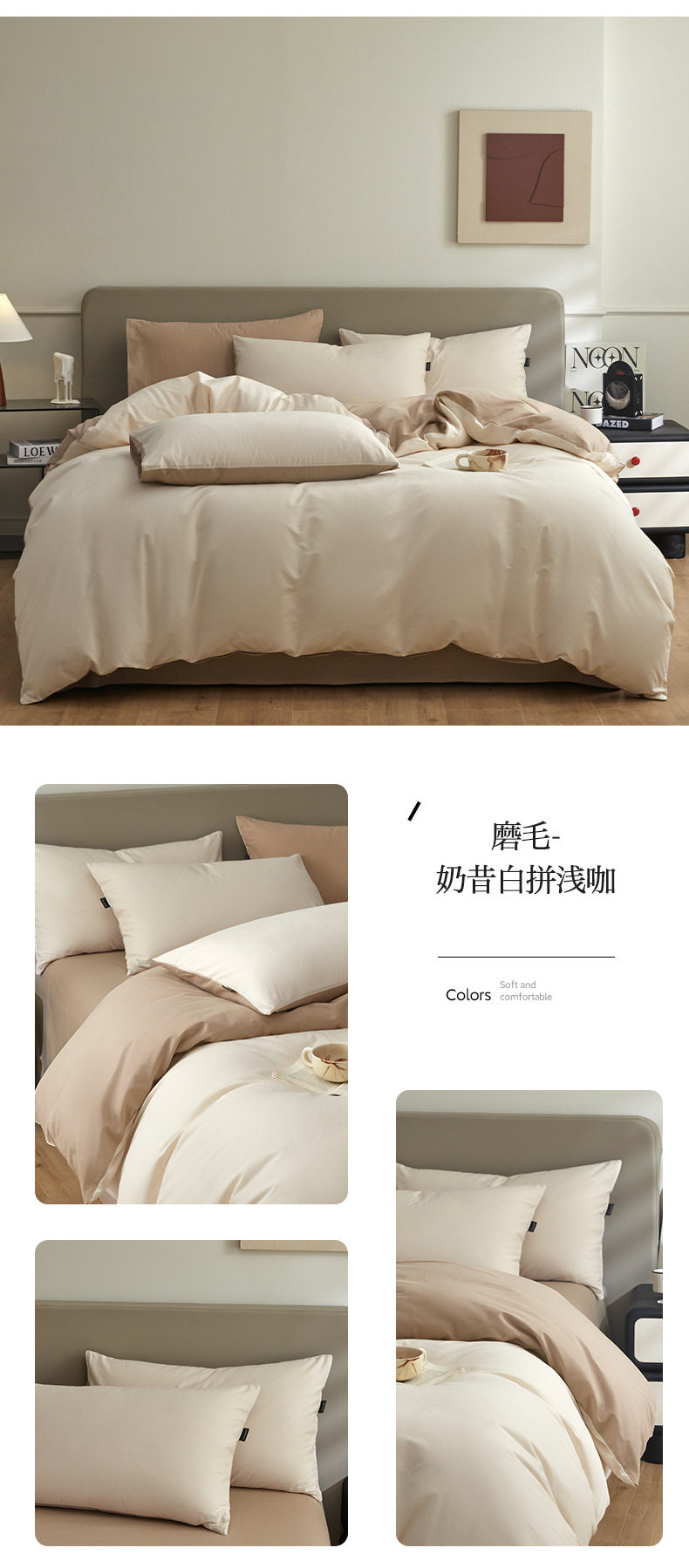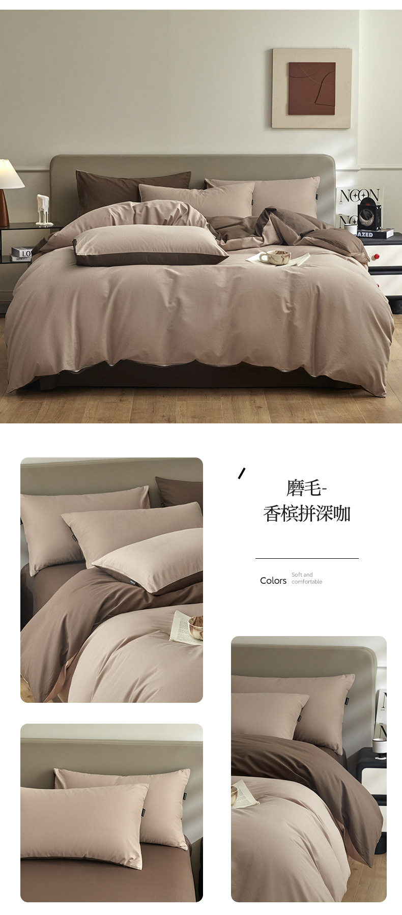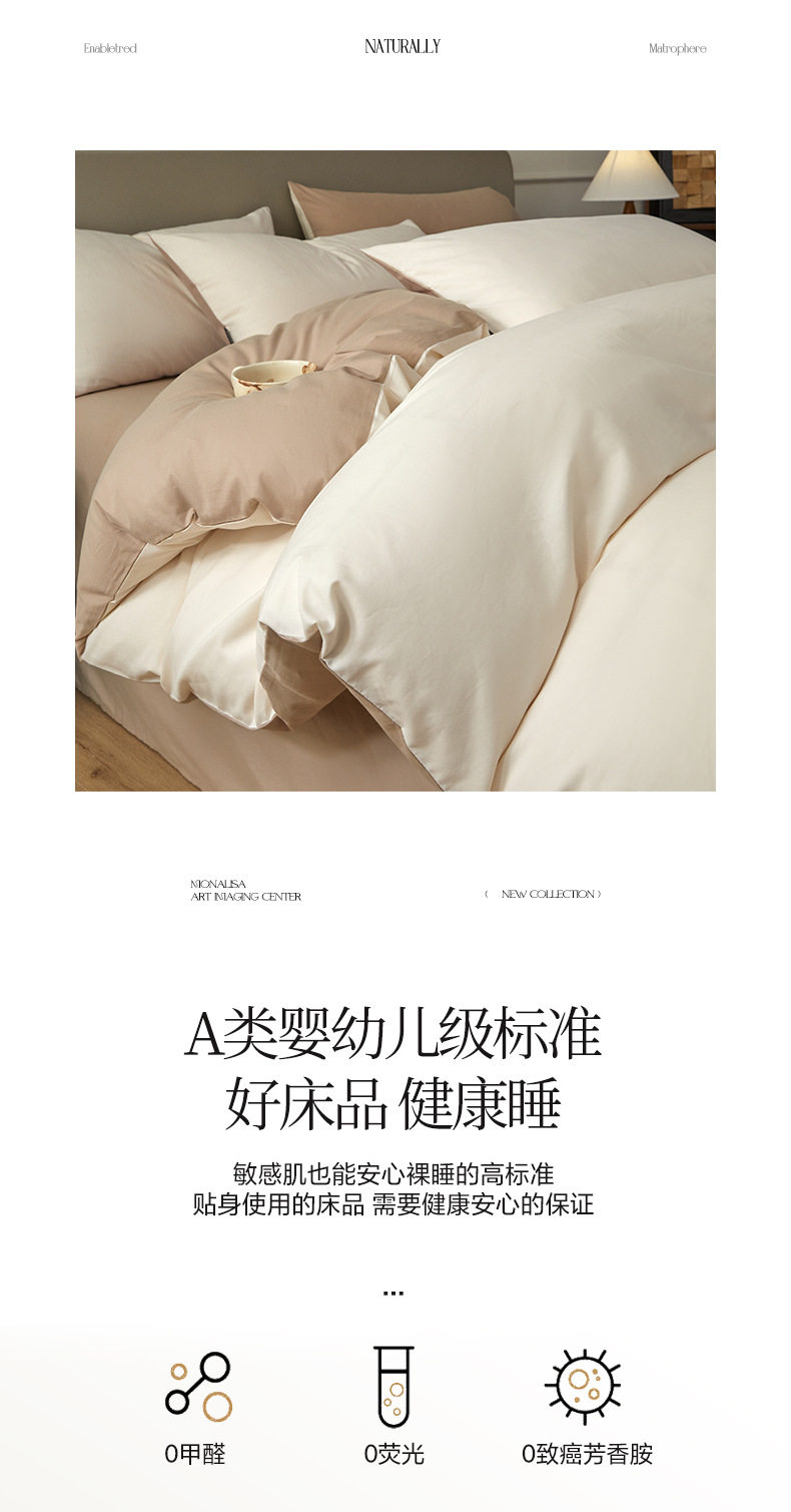 Simple Class A Solid Color Cotton Sanding Four-piece Set Baby Grade Thickened Cotton Three-piece Set Light Luxury Bed Sheet Quilt Cover