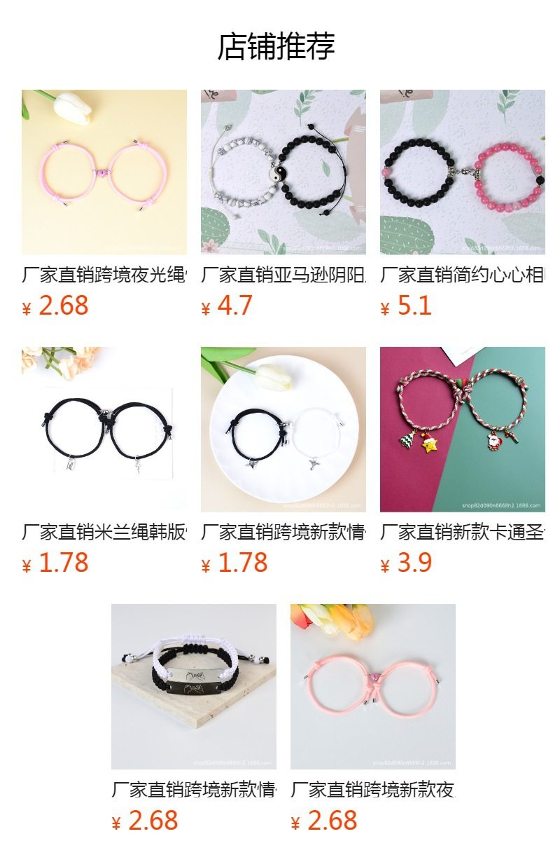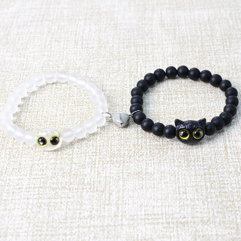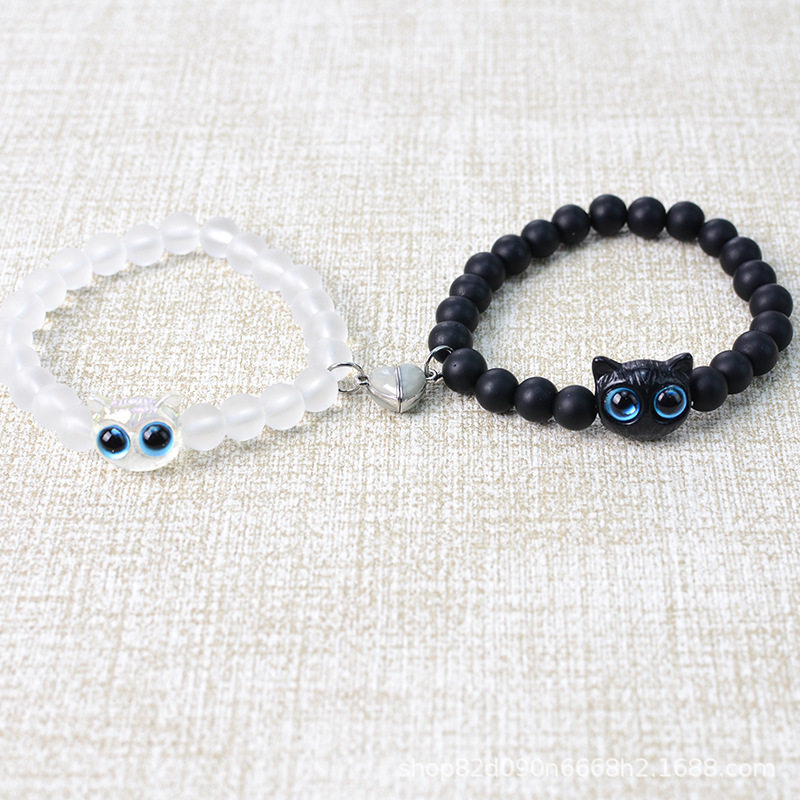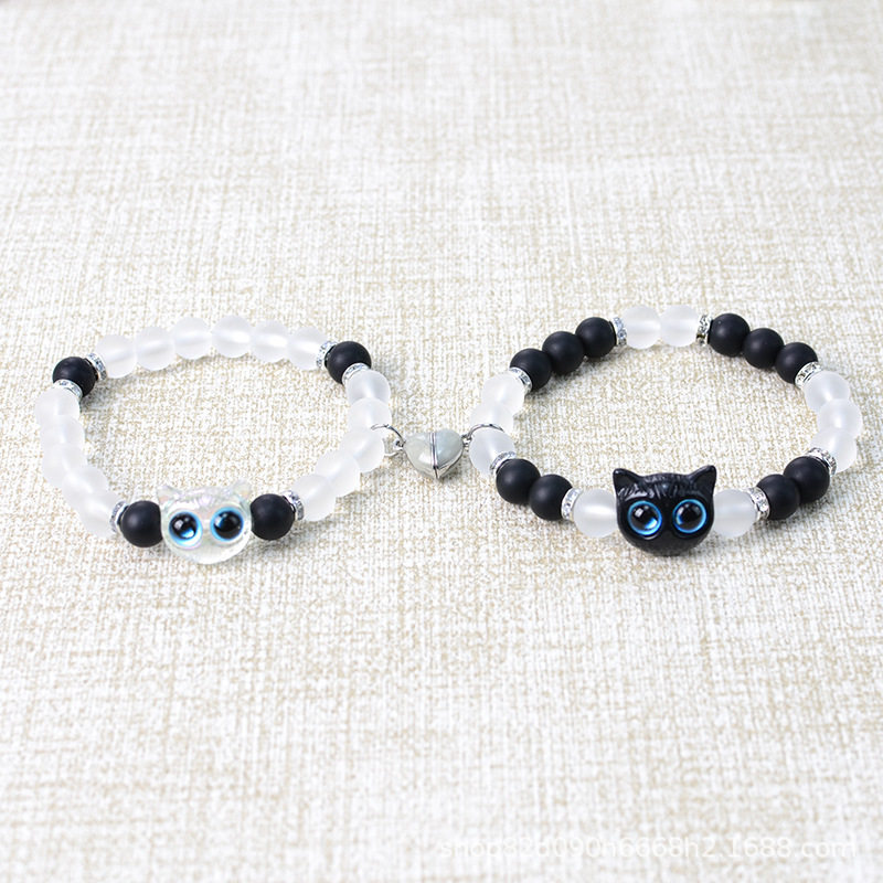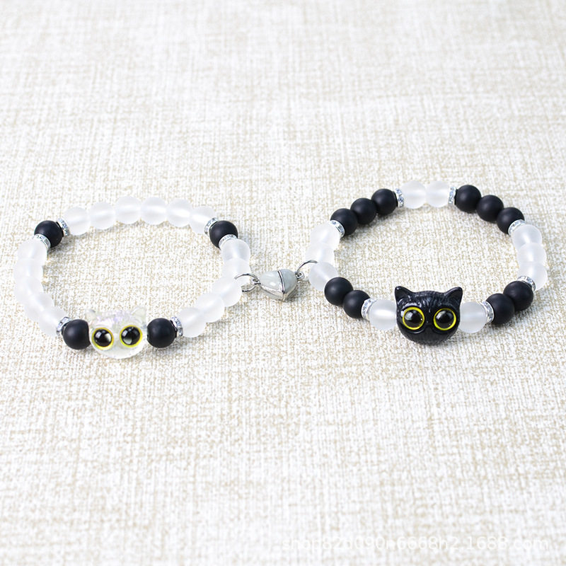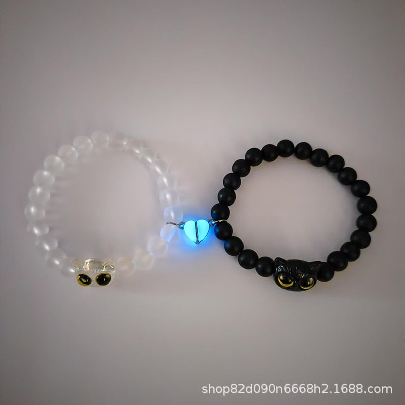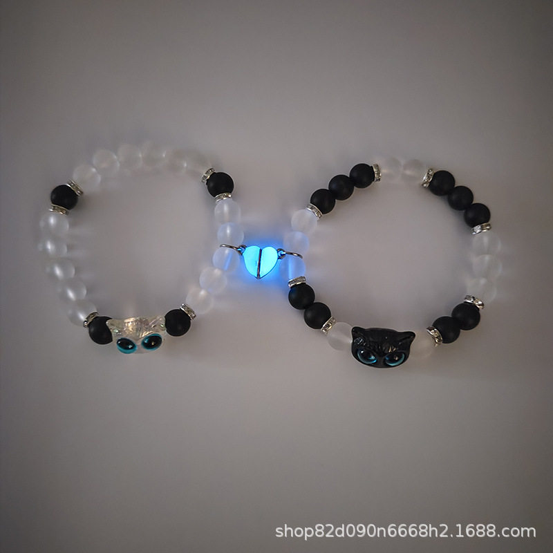 Cross-border European and American Beaded Bracelet Cute Cat Two Loads of Love Magnetic Luminous Luminous Couple Bracelet Bracelet