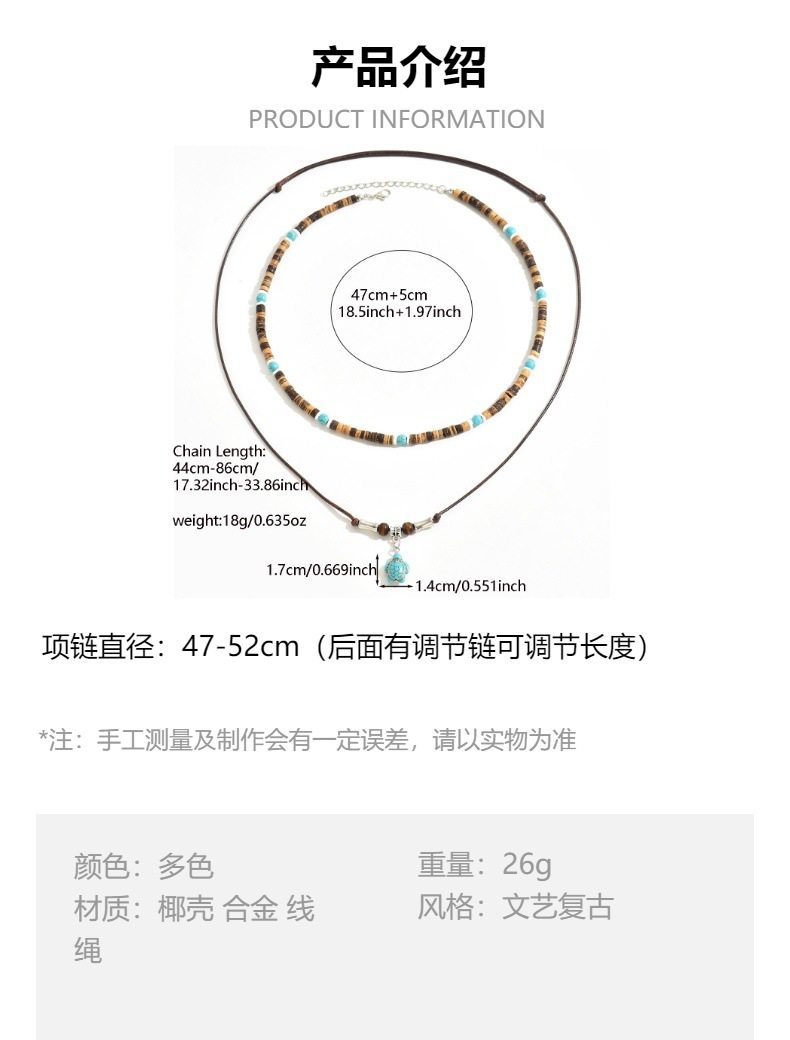 European and American Fashion Coconut Shell Turquoise Leather Wax Necklace suit Men's Hip-Hop Niche Overlapped Woolen Chain Cross-Border Jewelry for Men