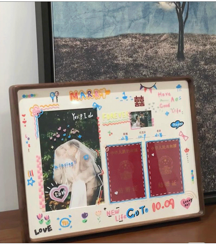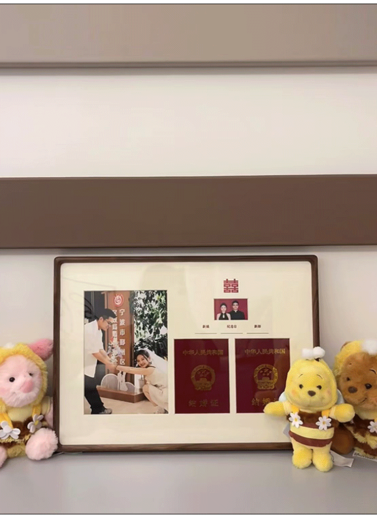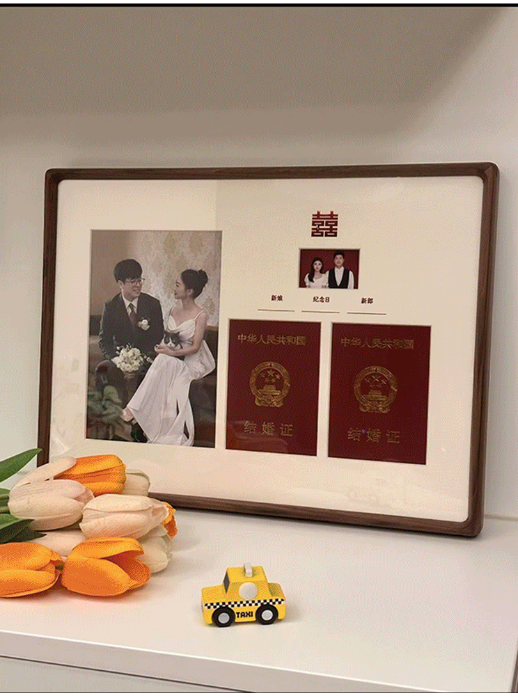 DIY Marriage Certificate Photo Frame Solid Wood Table High-level Wall-mounted Wedding Dress Commemorative Certificate Collection Creative Gift