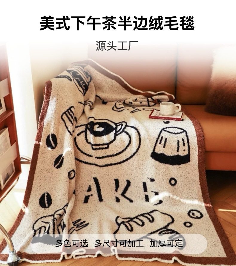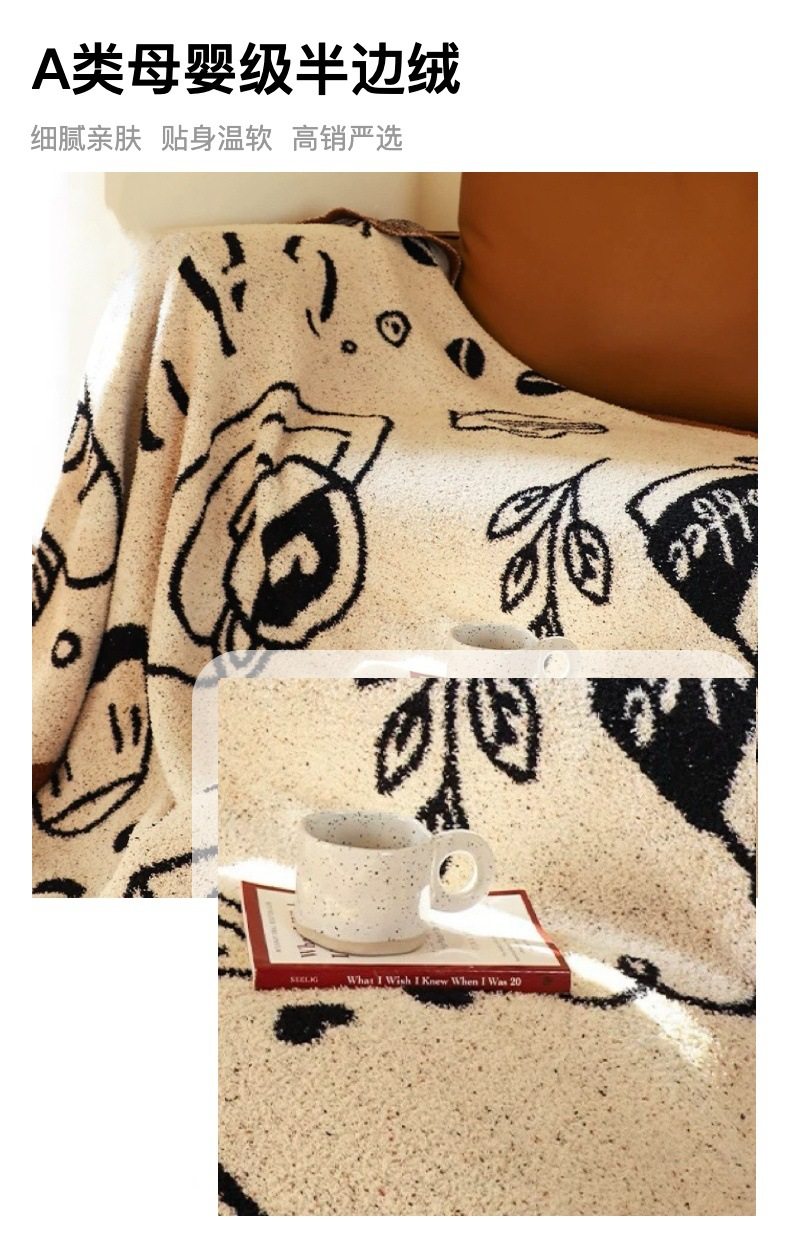 Creative American-Style Afternoon Tea A-Grade Maternal and Infant-Grade Half-Velvet Blanket, Simple Artistic Sofa Blanket, Skin-Friendly Blanket