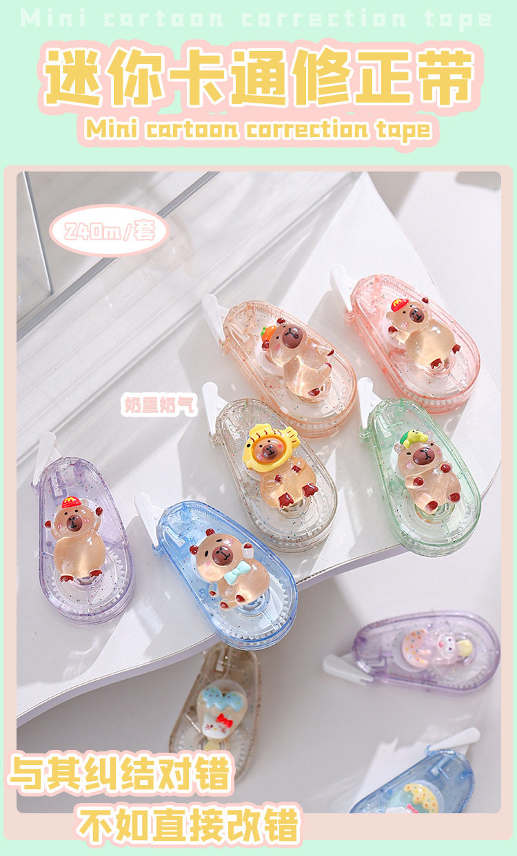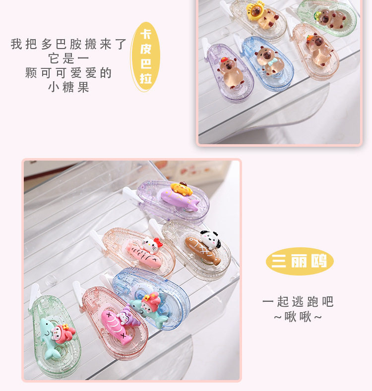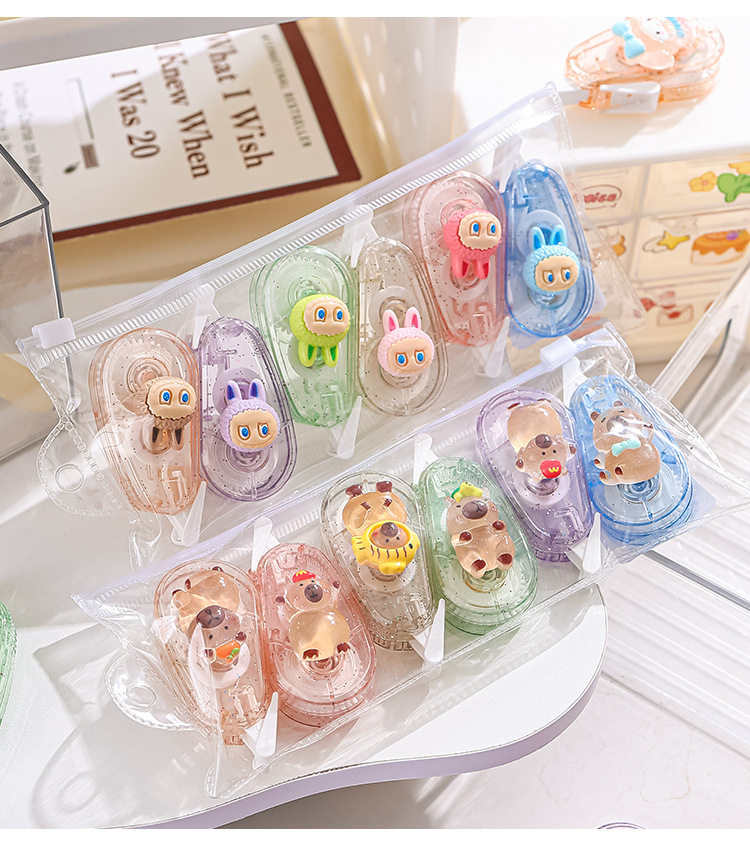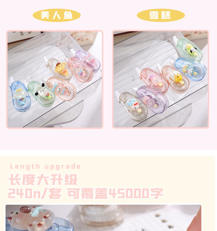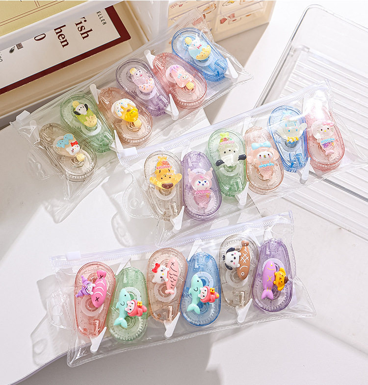 | Specification | Correction tape (pack of 6),Sanrio ice cream (pack of 6),Sanrio little fish (pack of 6),Sanrio mermaid (pack of 6),Kapibala (pack of 6),Laba (pack of 6) |