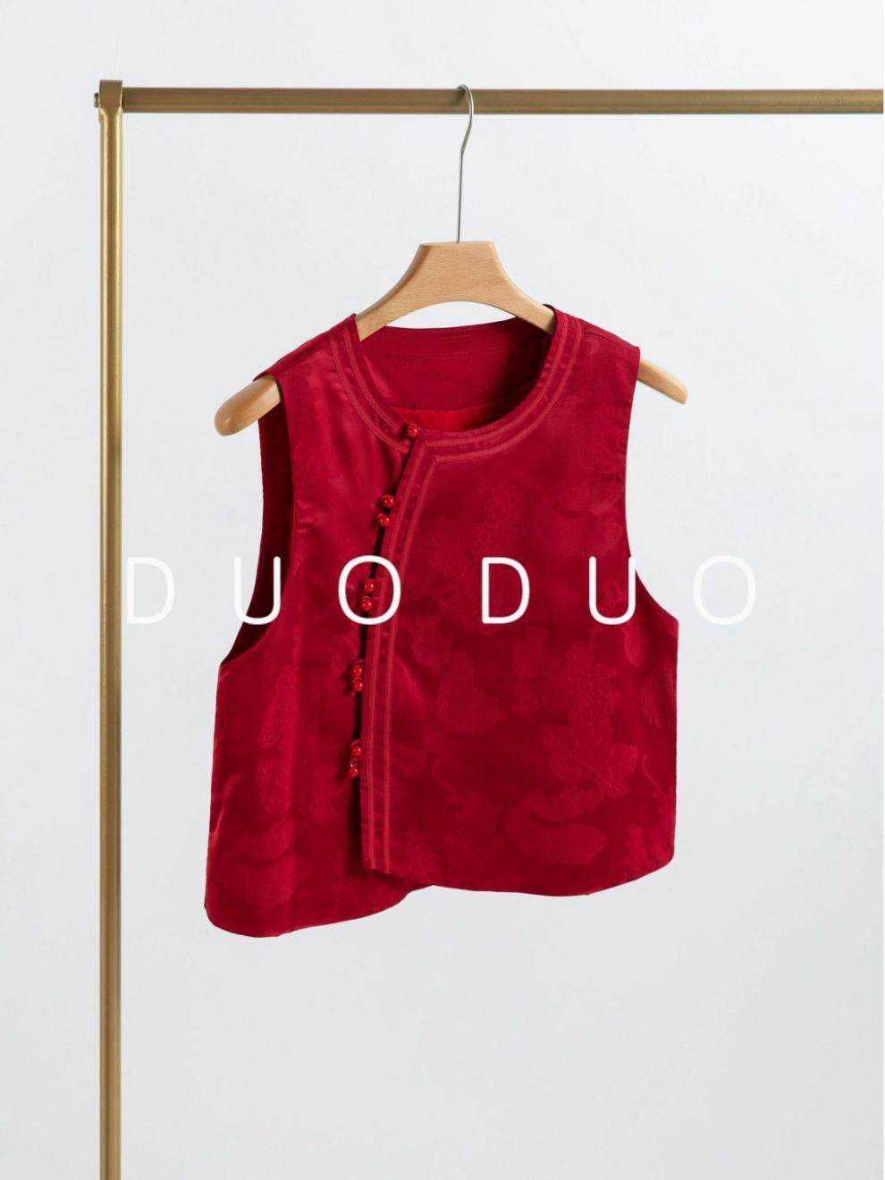 Shopkeeper Push New Chinese New Year Jacquard Vintage Buckle Vest Autumn and Winter 2024 Top New Red Chinese Style