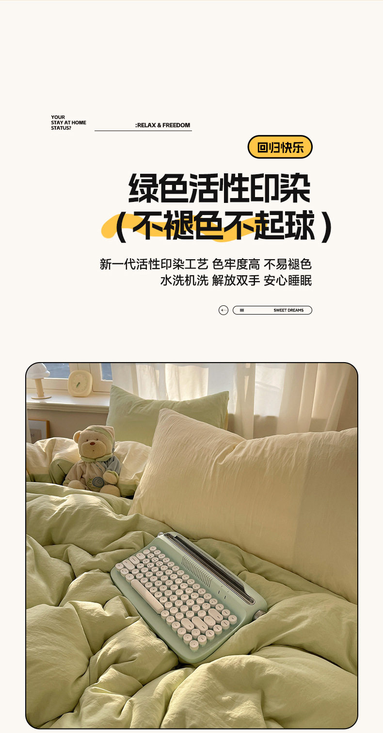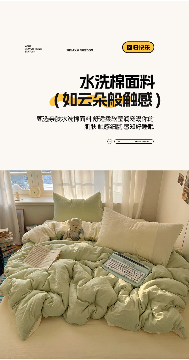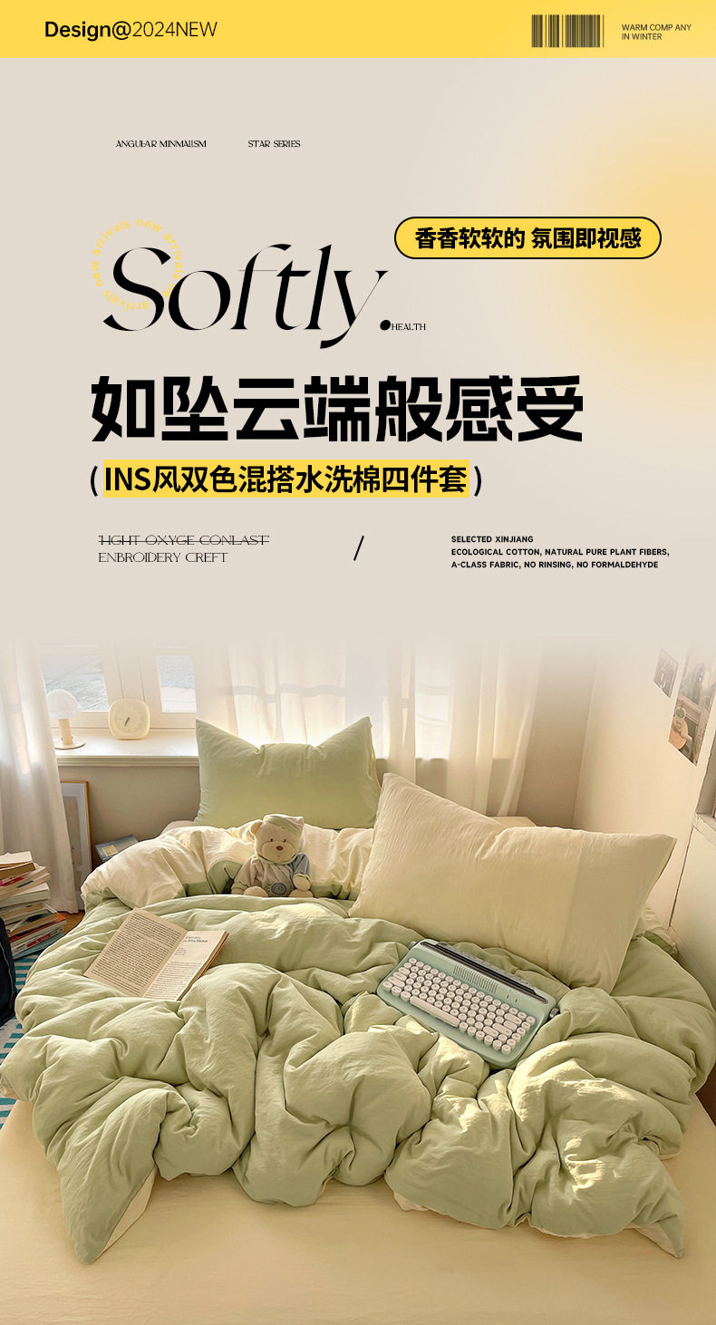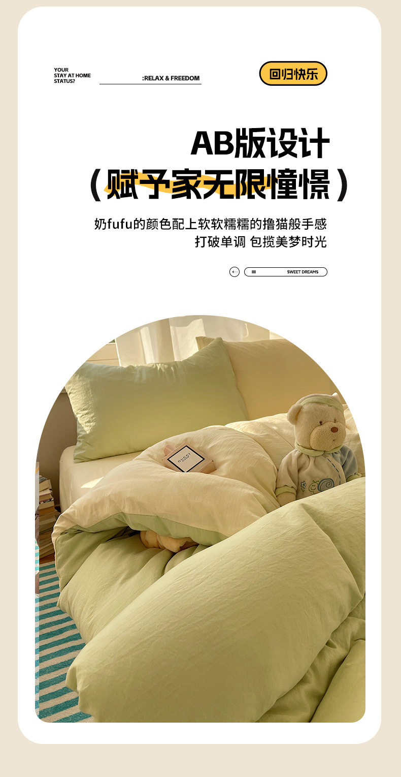 Ins blogger style solid color double spell super soft wash cotton four-piece bed sheet quilt cover student dormitory three-piece bed hat 4