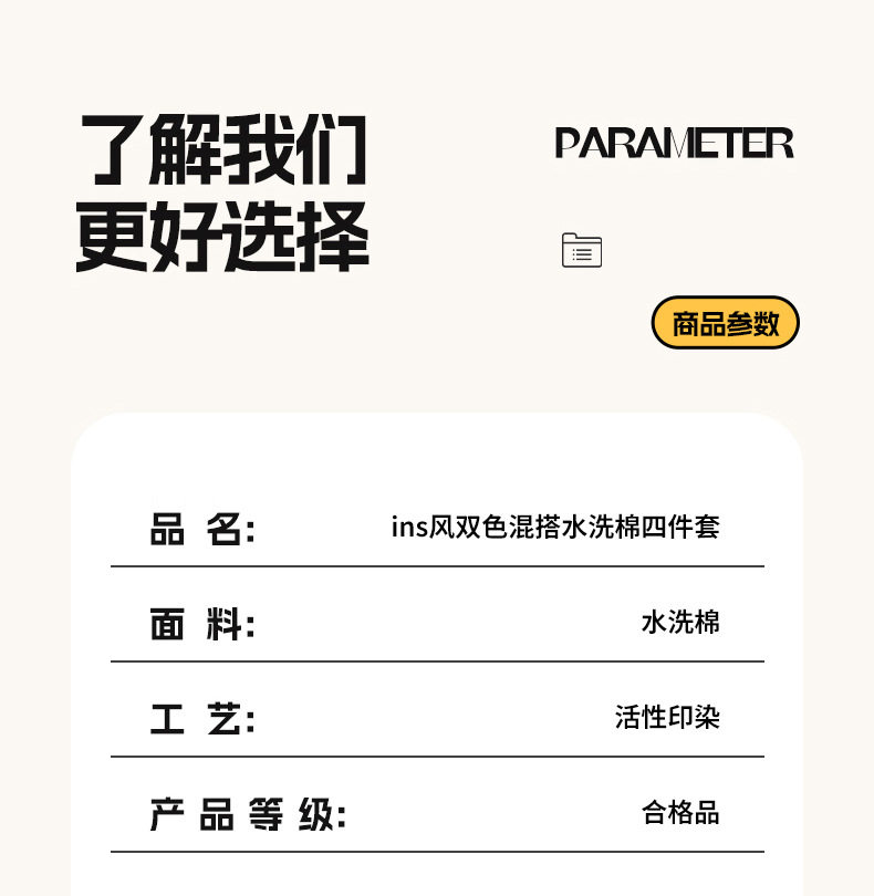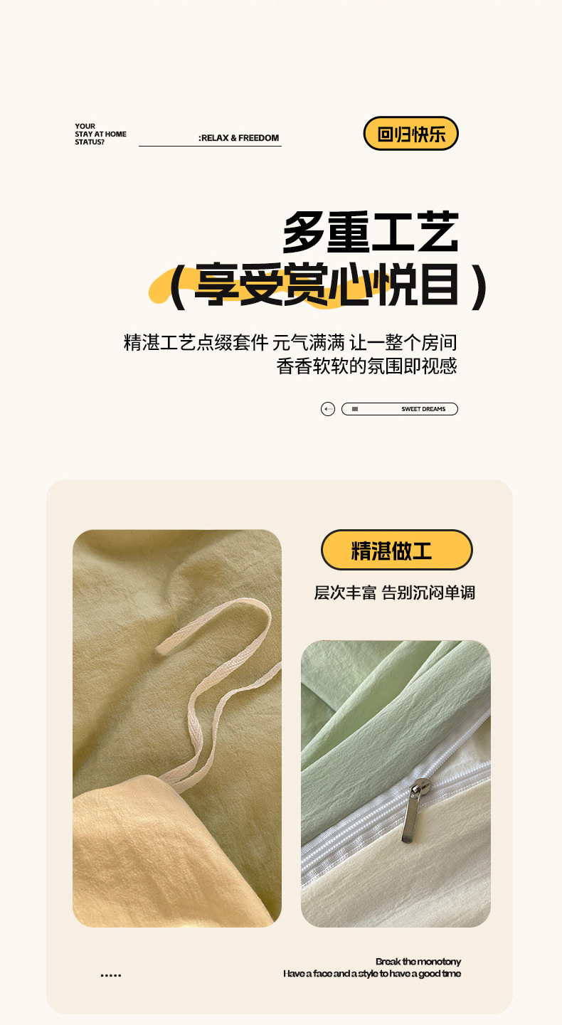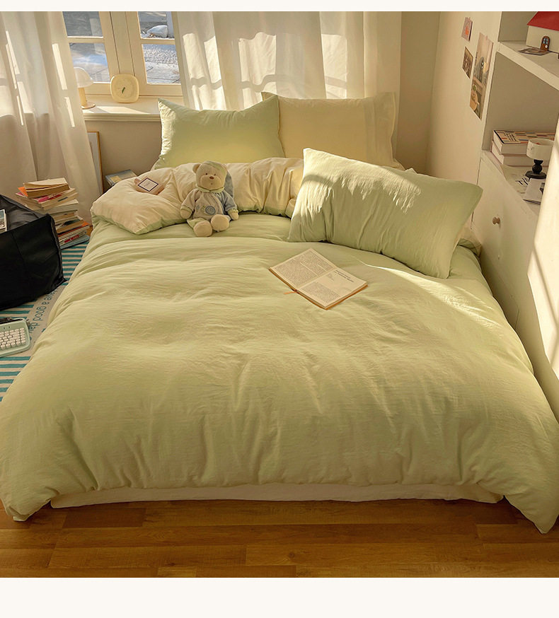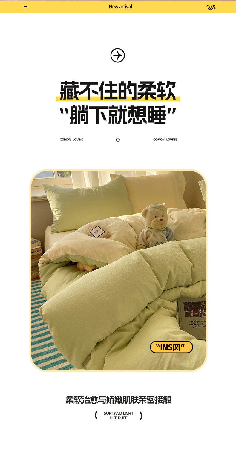 Ins blogger style solid color double spell super soft wash cotton four-piece bed sheet quilt cover student dormitory three-piece bed hat 4