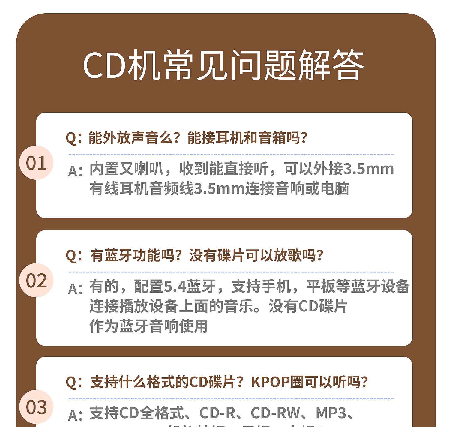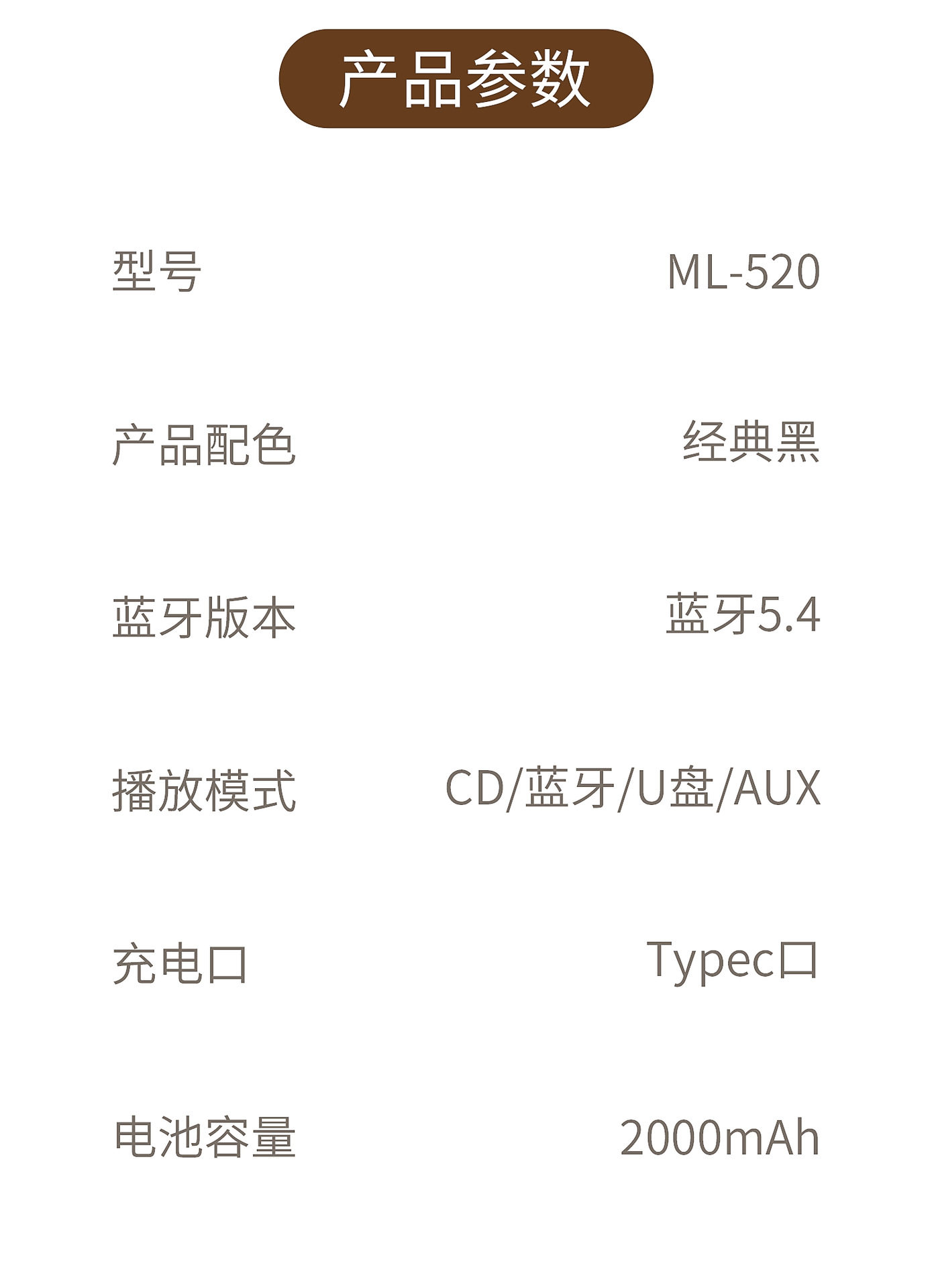 | Packing list | Cd player, charging cable, remote control, manual |