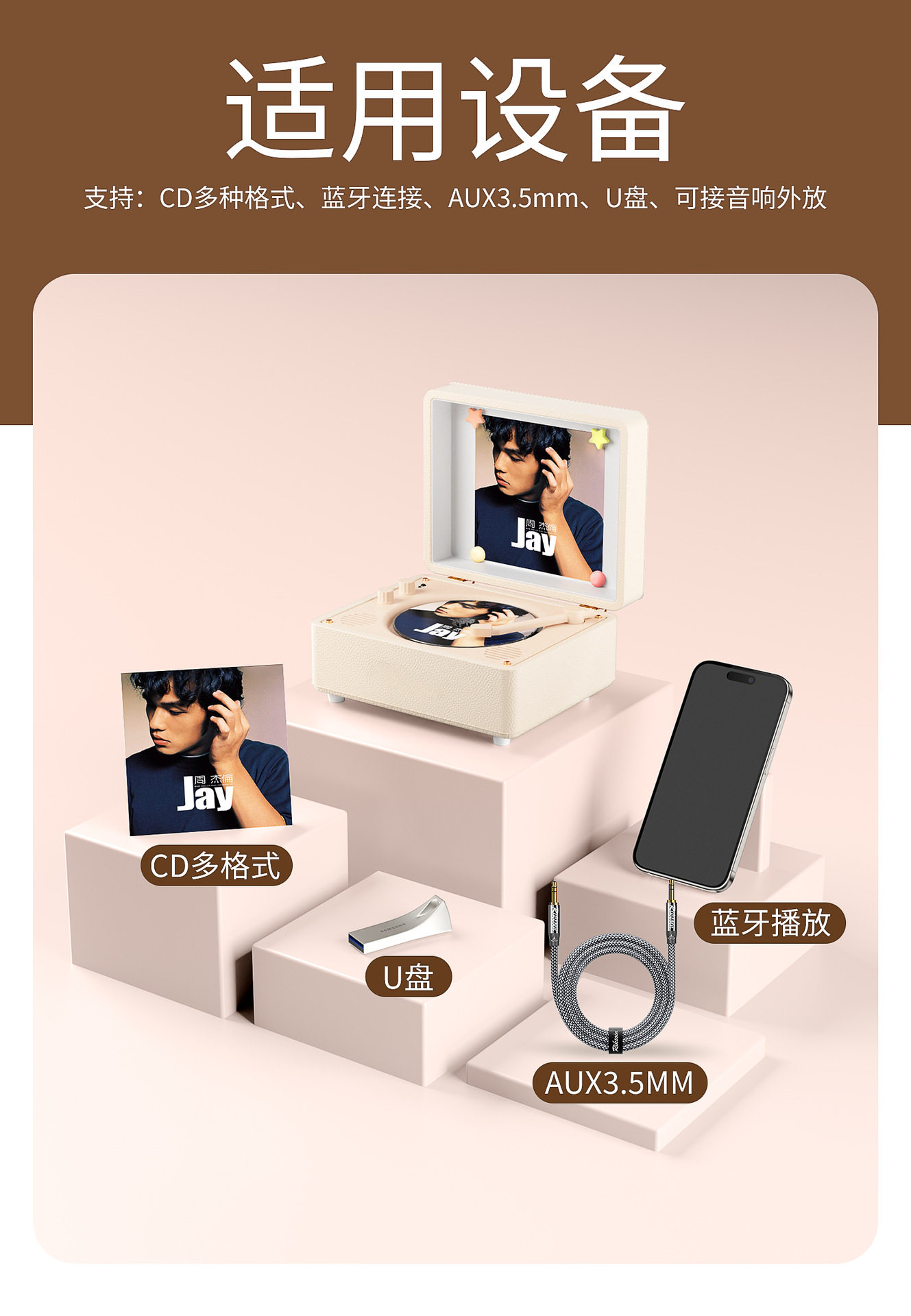 Cross-Border Export Meiling M525I Retro Cd Player Pink Leather Creative Album Cd Bluetooth Audio