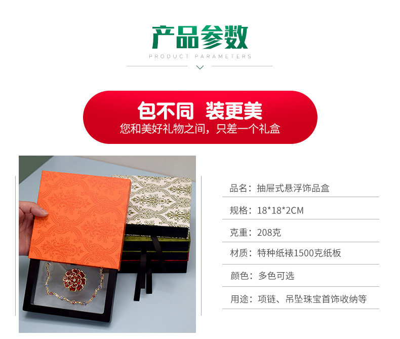 | Specification model | Ruby red pull-out box + inner box; 18*18*2cm,White pull-out box + inner box; 18*18*2cm,Black pull-out black + inner box; 18*18*2cm,Navy blue pull-out box + inner box; 18*18*2cm,Jungle green pull-out box + inner box; 18*18*2cm |