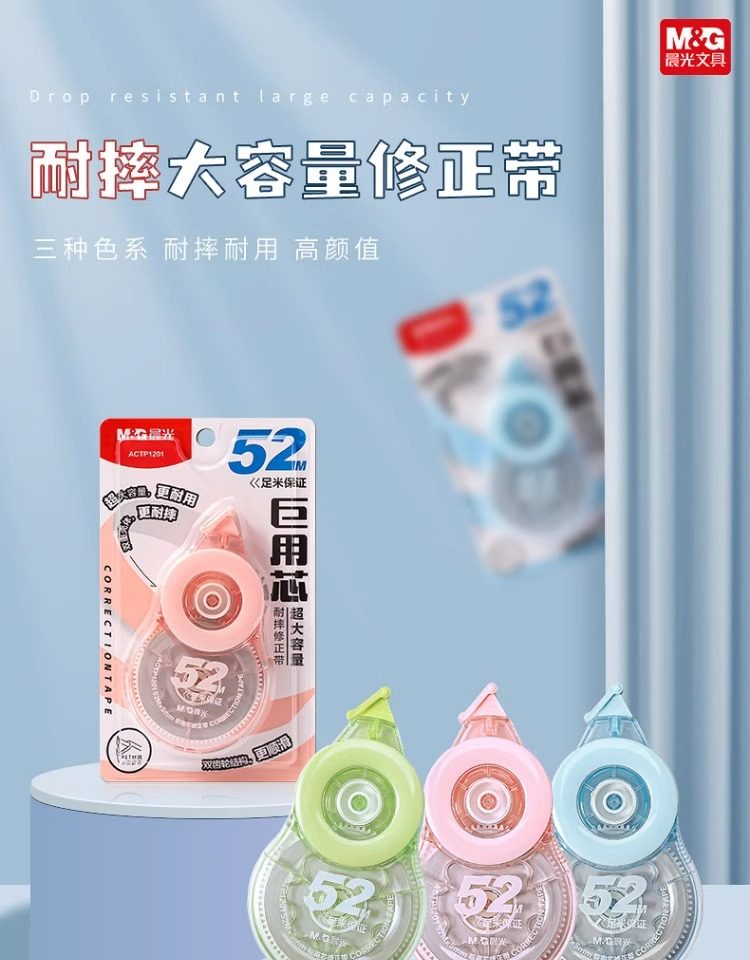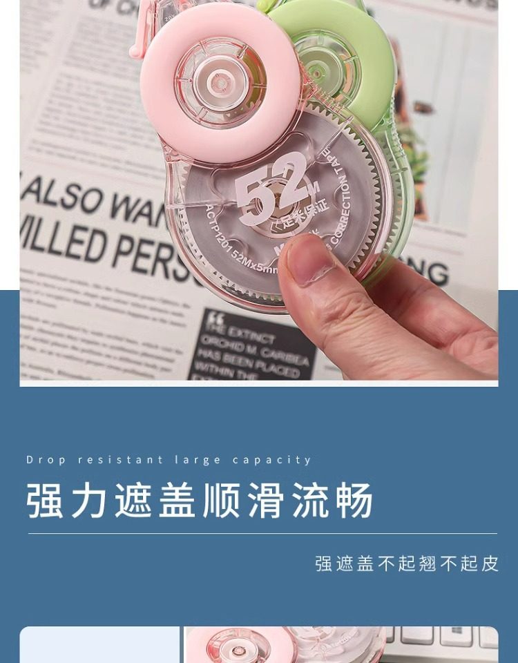 New Product with Huge Capacity 52m Extra-Large Correction Tape for Students, Genuine Smooth Multi-Functional Correction Tape P1201