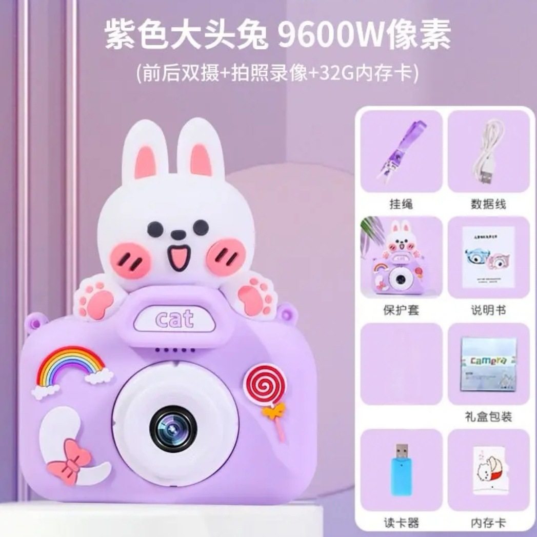 Children's Digital Camera with Dual Front and Rear Cameras, Autofocus, Capable of Taking Photos and Recording Videos, Birthday Gift Camera with Dual Camera