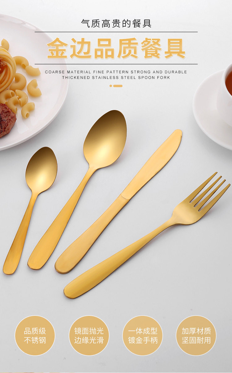 Golden Knife, Fork and Spoon Cross-Border Stainless Steel Tableware Steak Soup Spoon Western Food Knife Table Fork Table Spoon Wedding Tableware