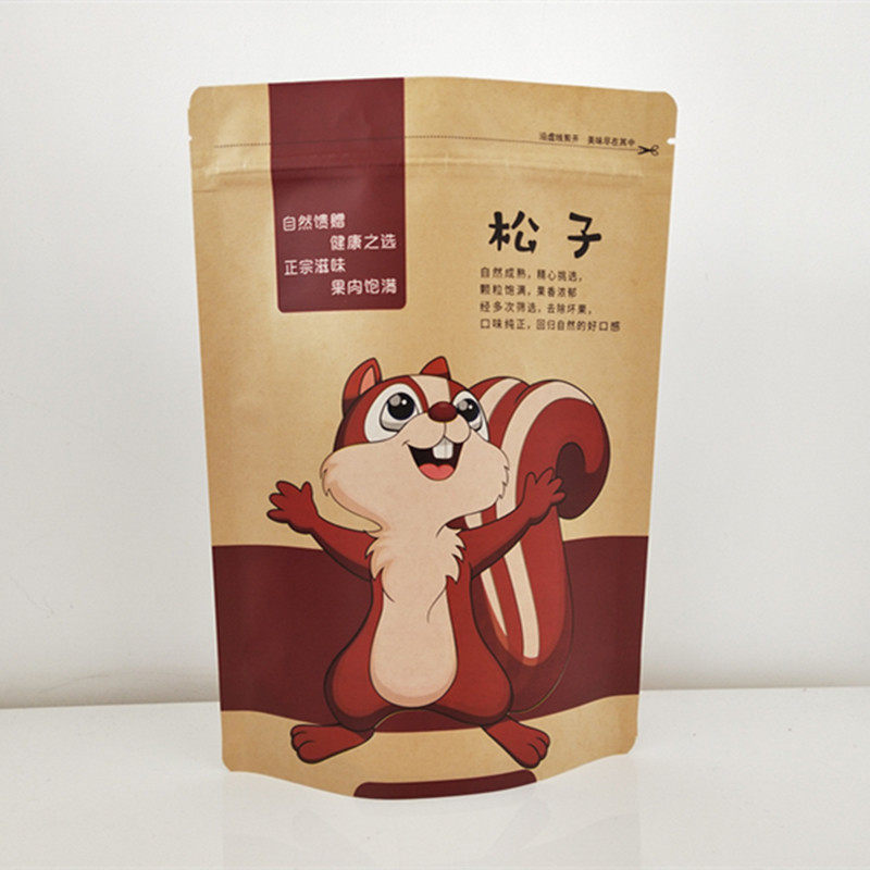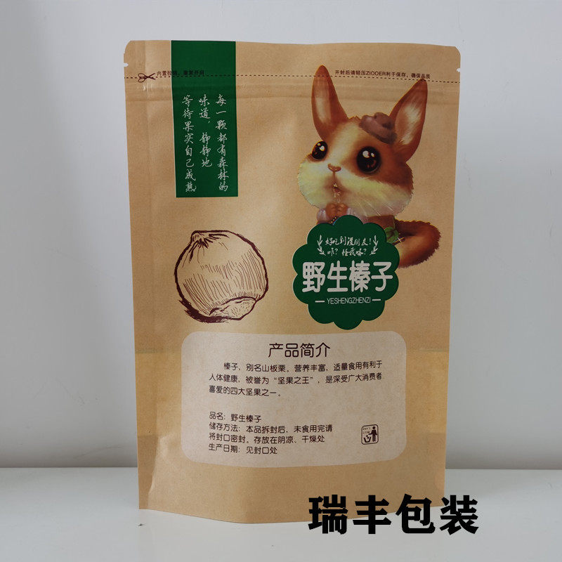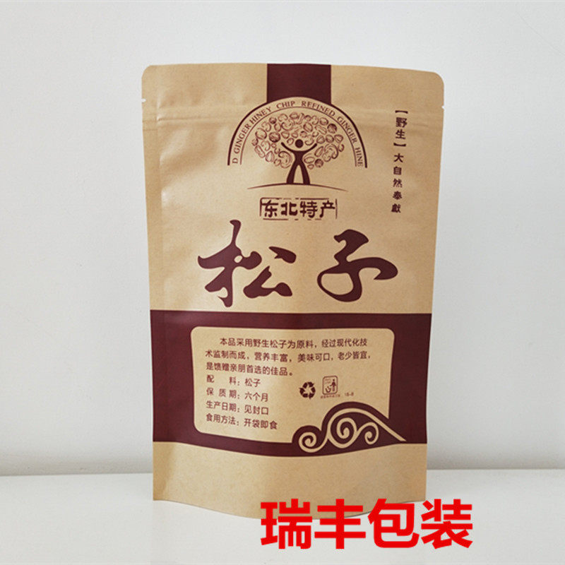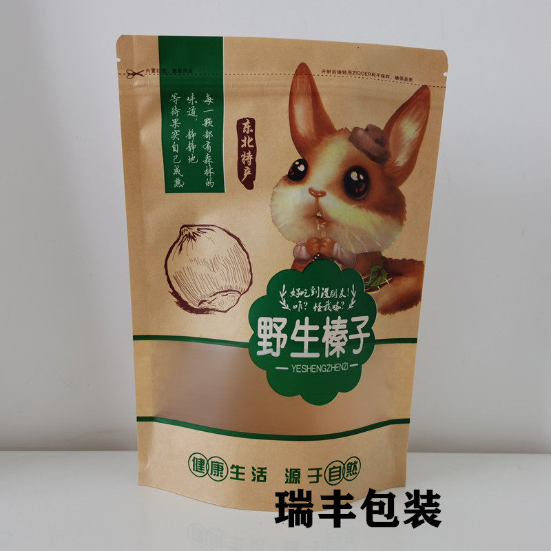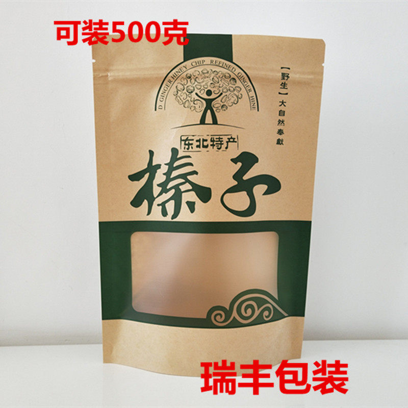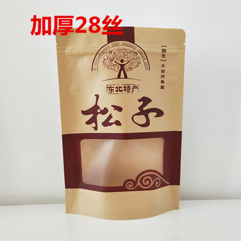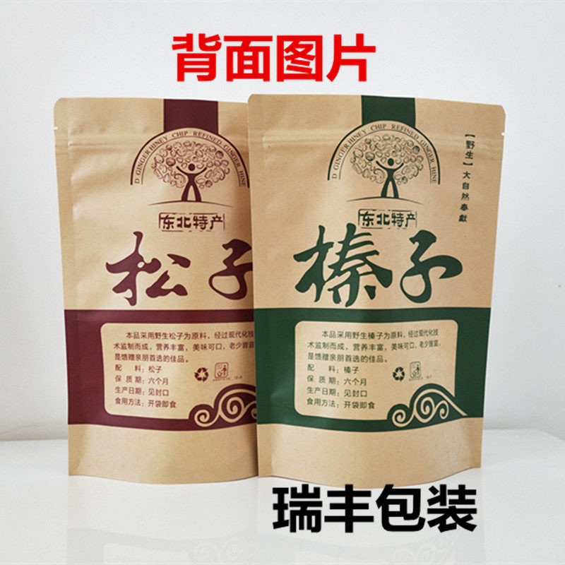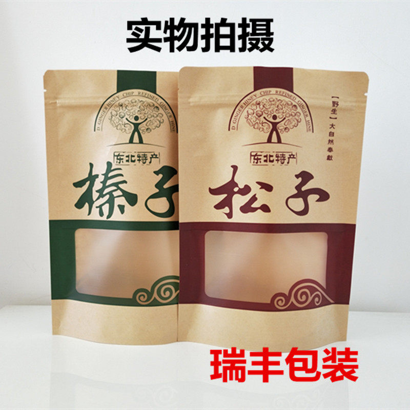 Northeast Wild Hazelnut Pine Nut Self-sealing Self-supporting Packaging Bag 500g Kraft Paper Bag Gift Bag Wholesale